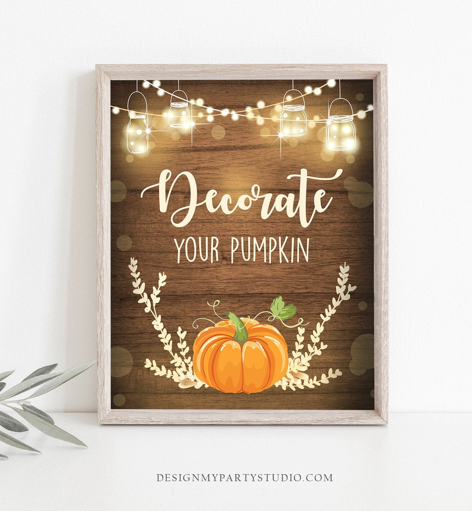 • Decorate Your Pumpkin Sign Rustic Orange Pumpkin Baby Shower Birthday Sign Pumpkin Carving Party Fall Party Autumn Decor PRINTABLE 0015