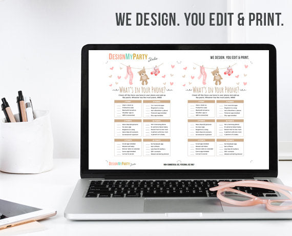 • Teddy Bear Baby Shower What's in Your Phone Game Cards Instant Download Digital File Baby Game Shower Activities DIY Printable 0025