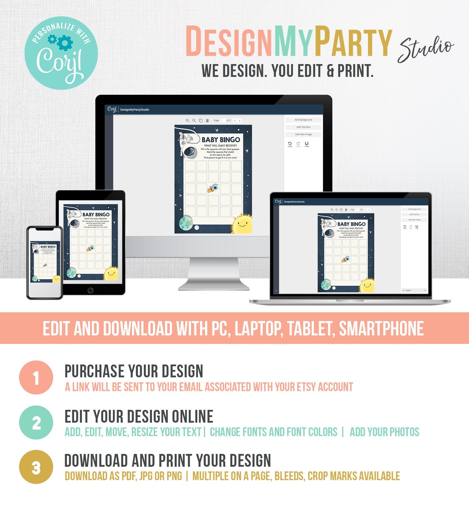 Once payment is confirmed, you will get an email containing the link for you to access your editable design.