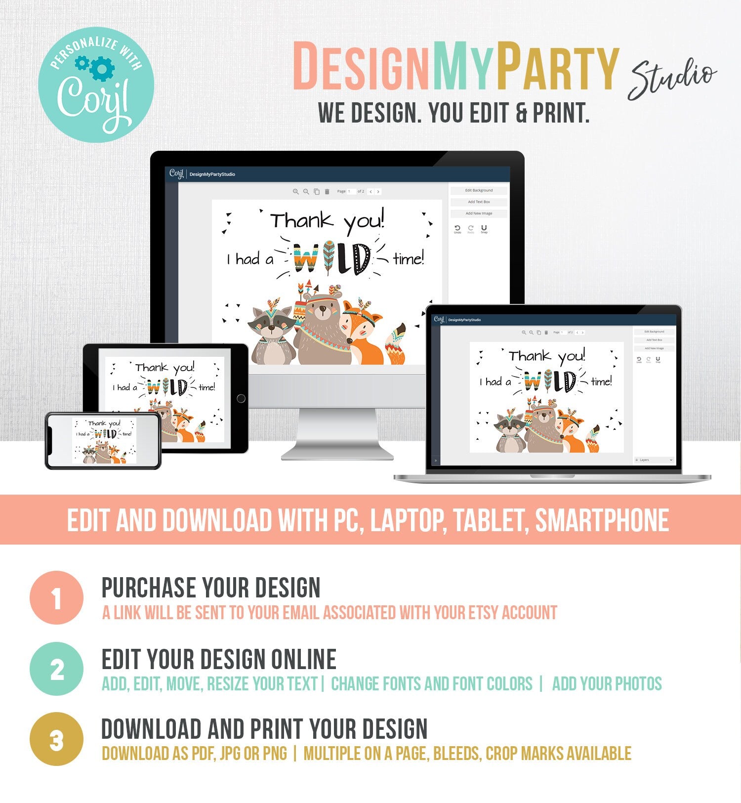 You will receive a link to edit your digital design, no printed items will be shipped!
