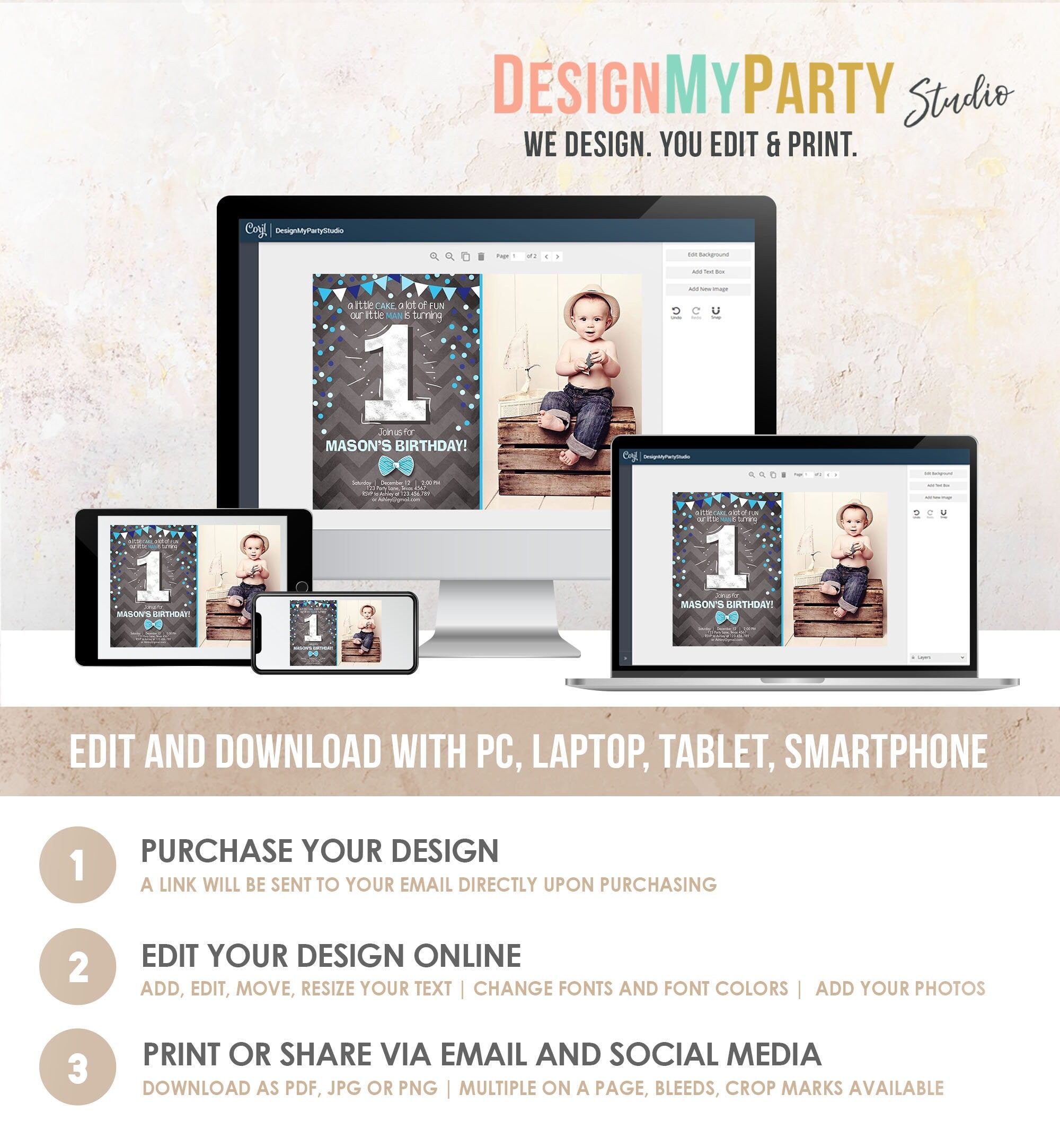 You will receive a link to edit your digital invitation, no printed items will be shipped!