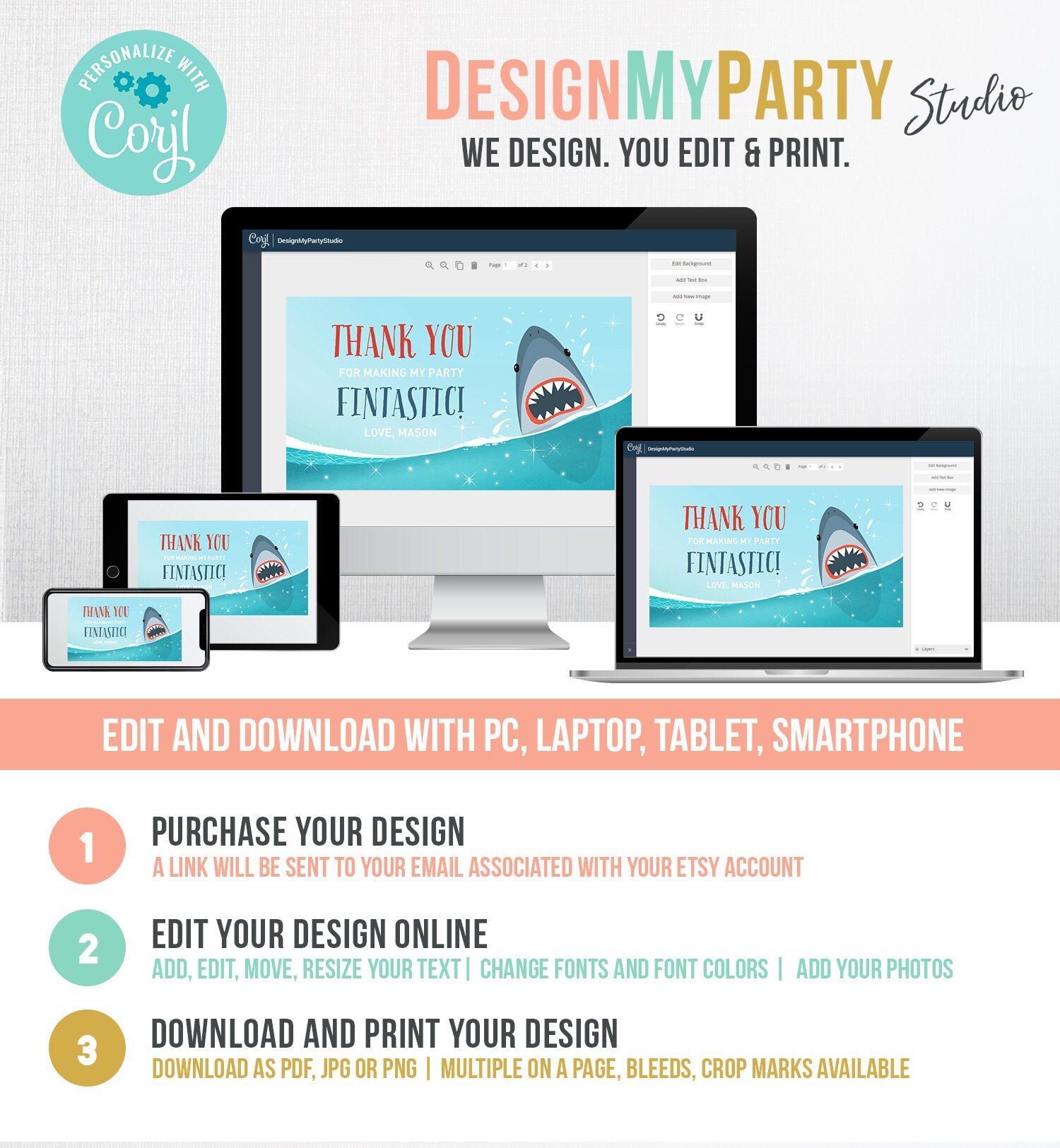 You will receive a link to edit your digital design, no printed items will be shipped!