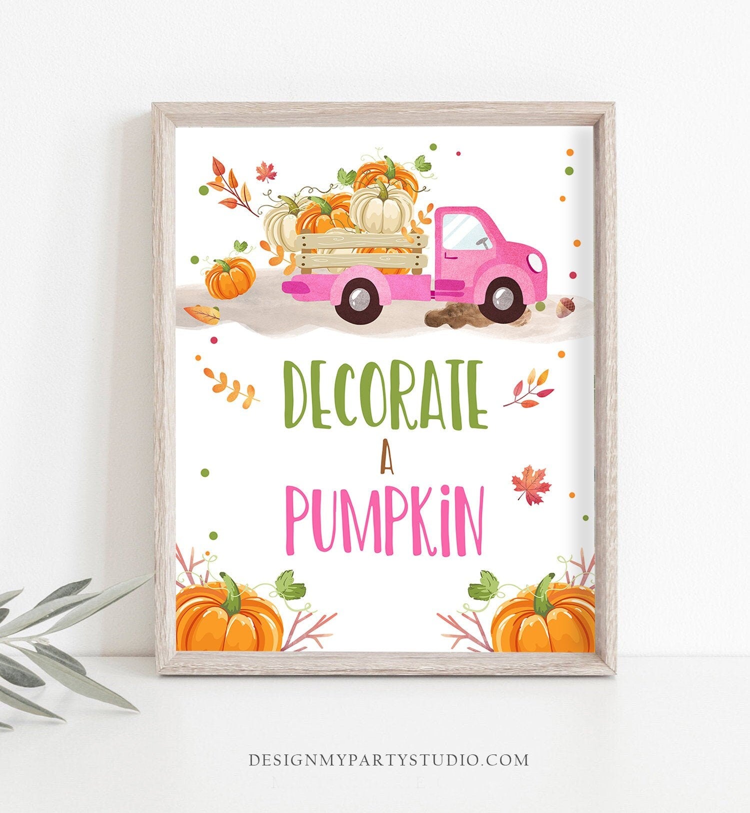 • Decorate a Pumpkin Sign Pumpkin Birthday Sign Pumpkin Carving Party Signs Decor Fall Party Autumn Girl Pink Truck Decor Printable 0153