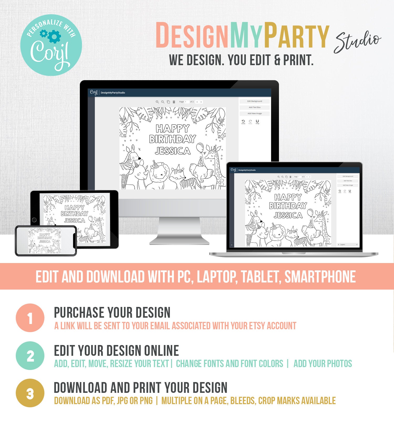 Materials: Instant Download, Digital Download, Printable, Printable Sign, Digital File, PDF, JPG, Corjl, Editable coloring, Personalized coloring page.