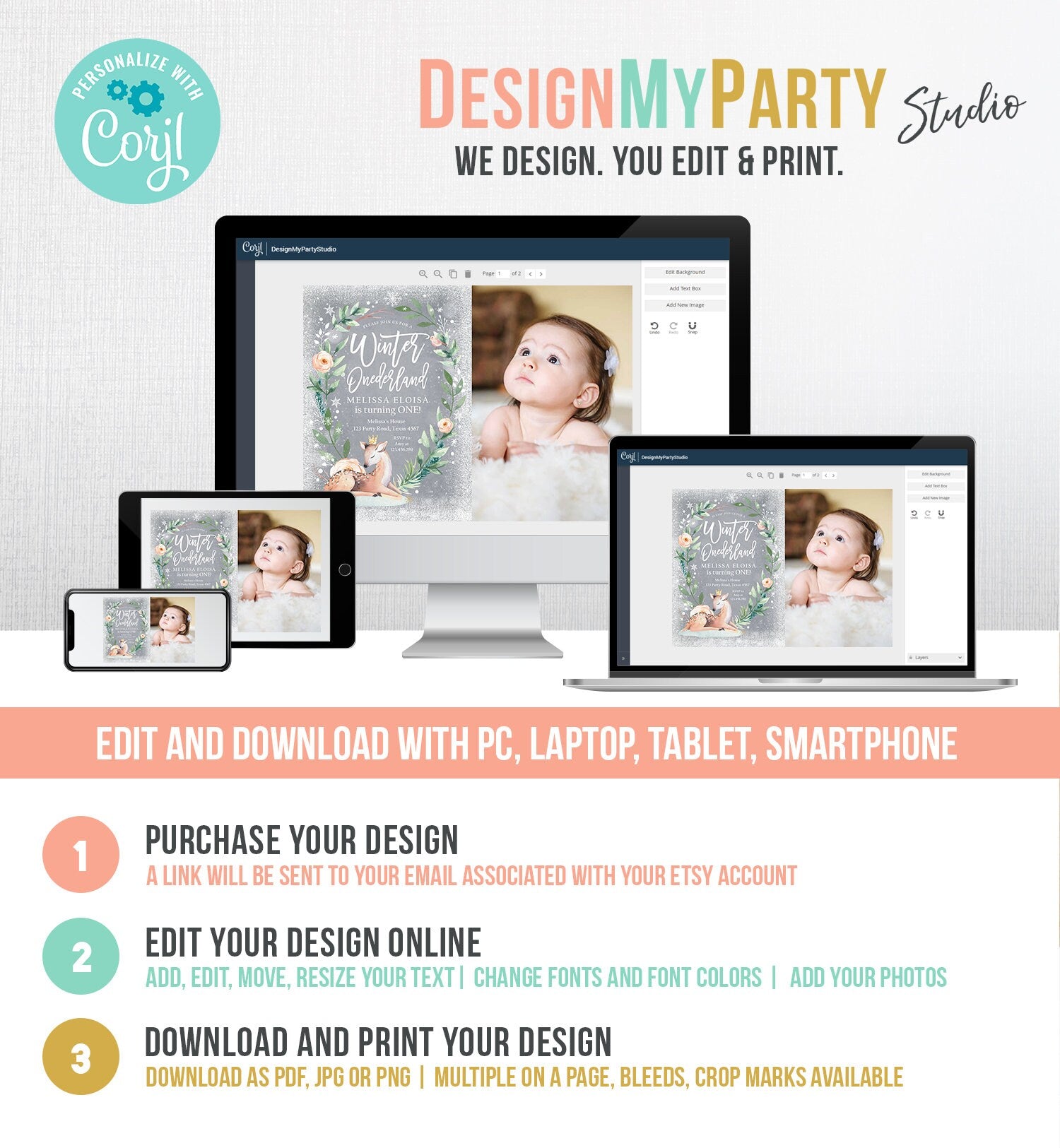 You will receive a link to edit your digital design, no printed items will be shipped!