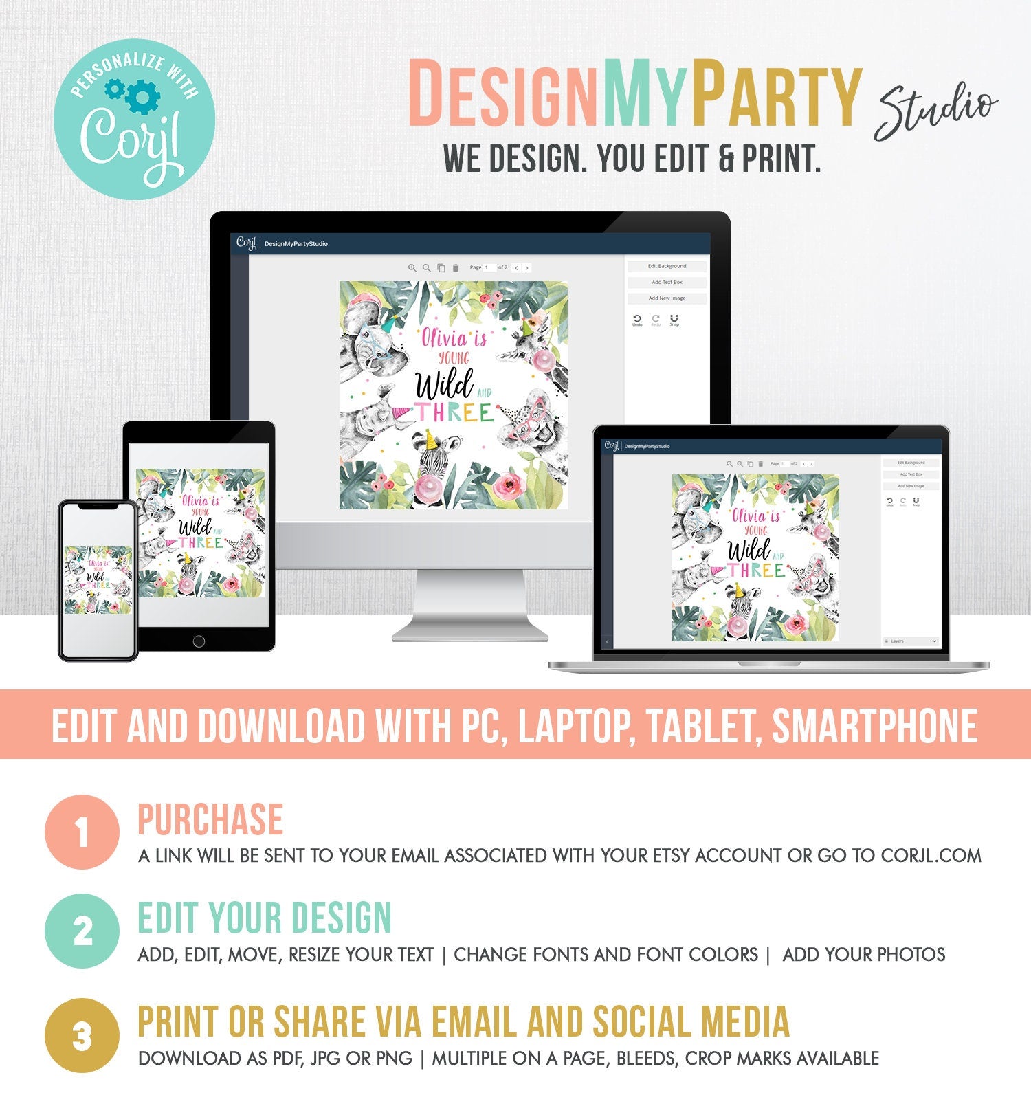You will receive a link to edit your digital design, no printed items will be shipped!