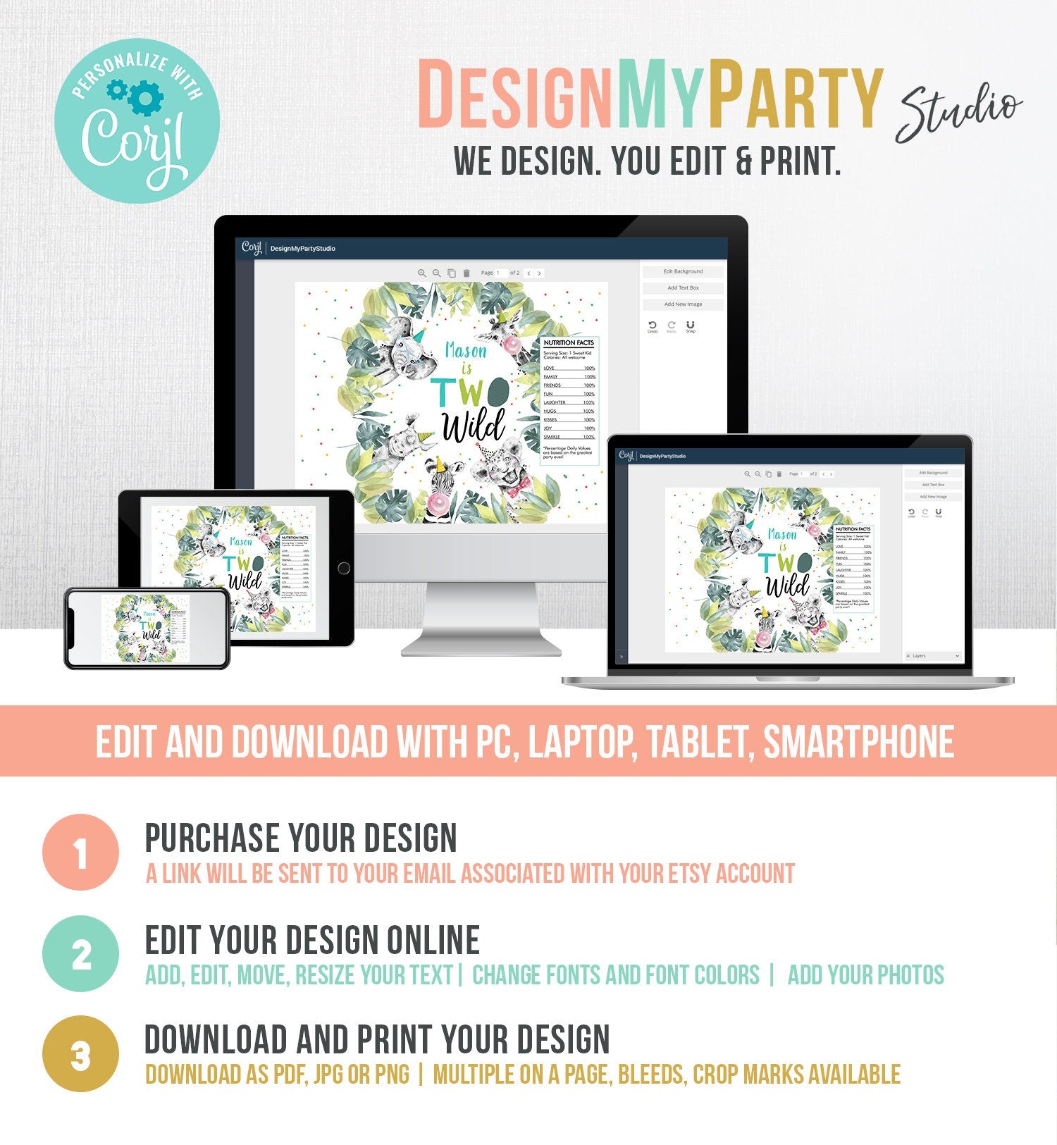 You will receive a link to edit your digital design, no printed items will be shipped!