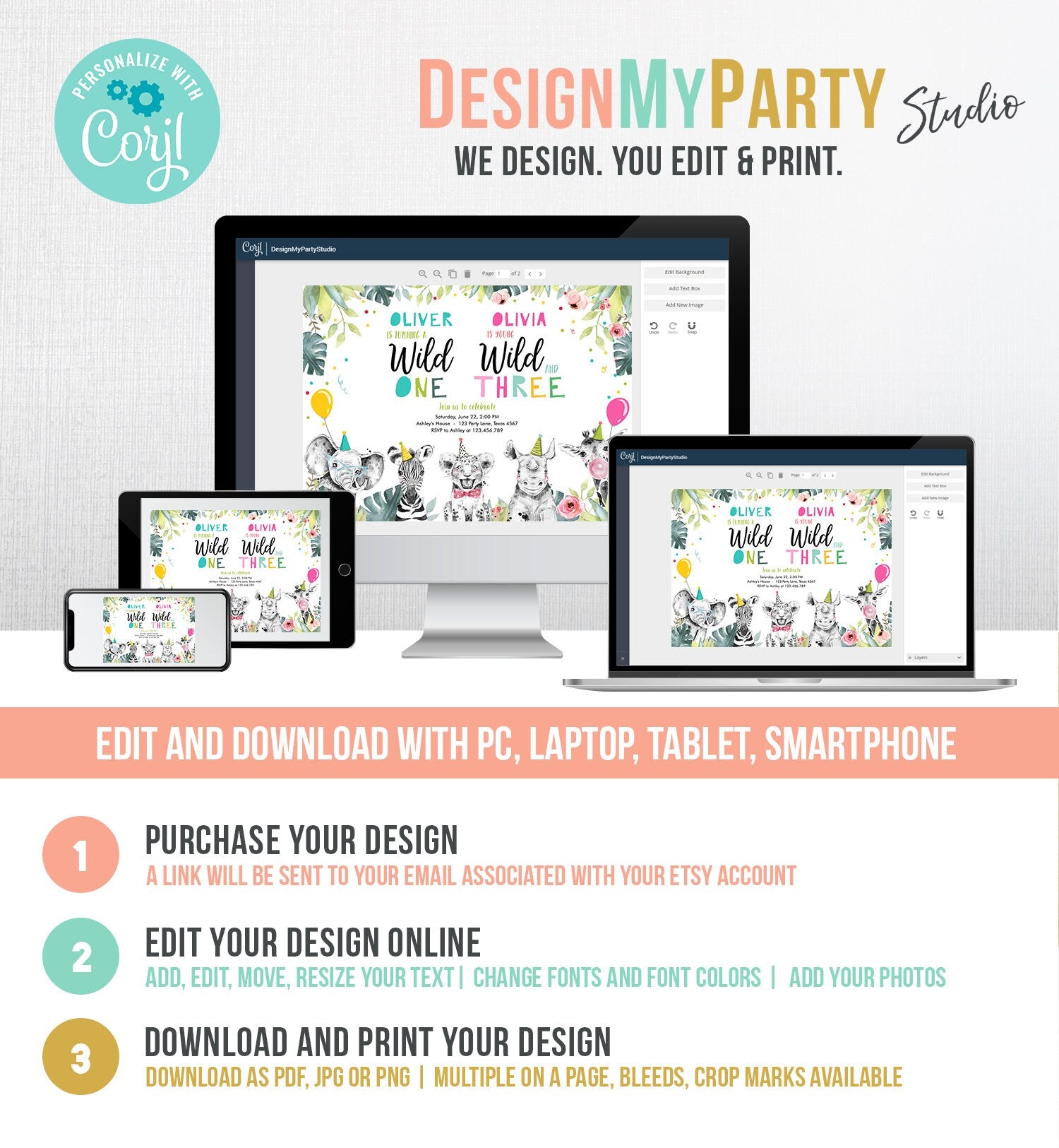 You will receive a link to edit your digital design, no printed items will be shipped!