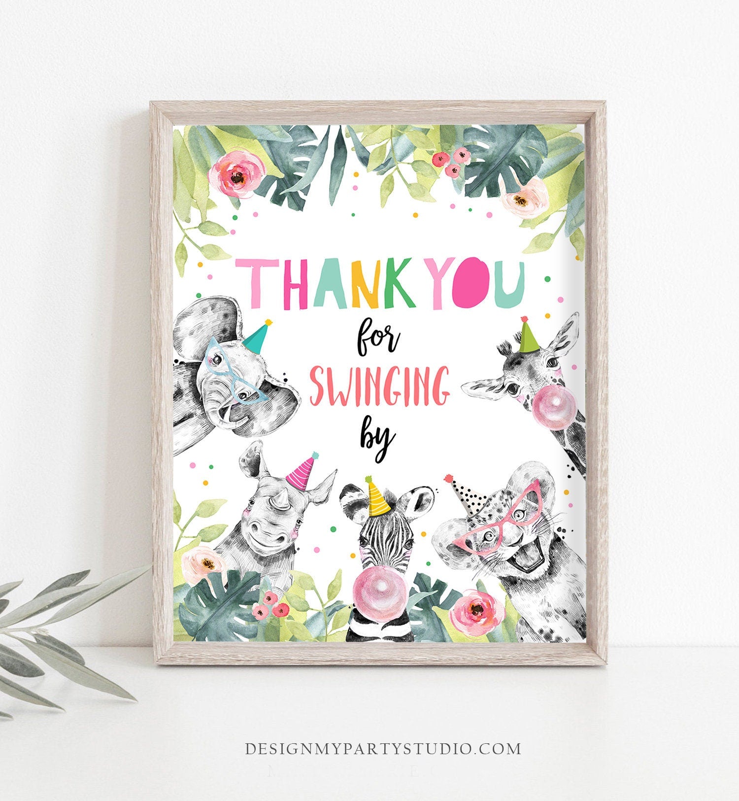 • Thank You For Swinging By Birthday Sign Party For Coming Safari Animals Party Animals Zoo Girl Pink Decor Digital Download Printable 0322