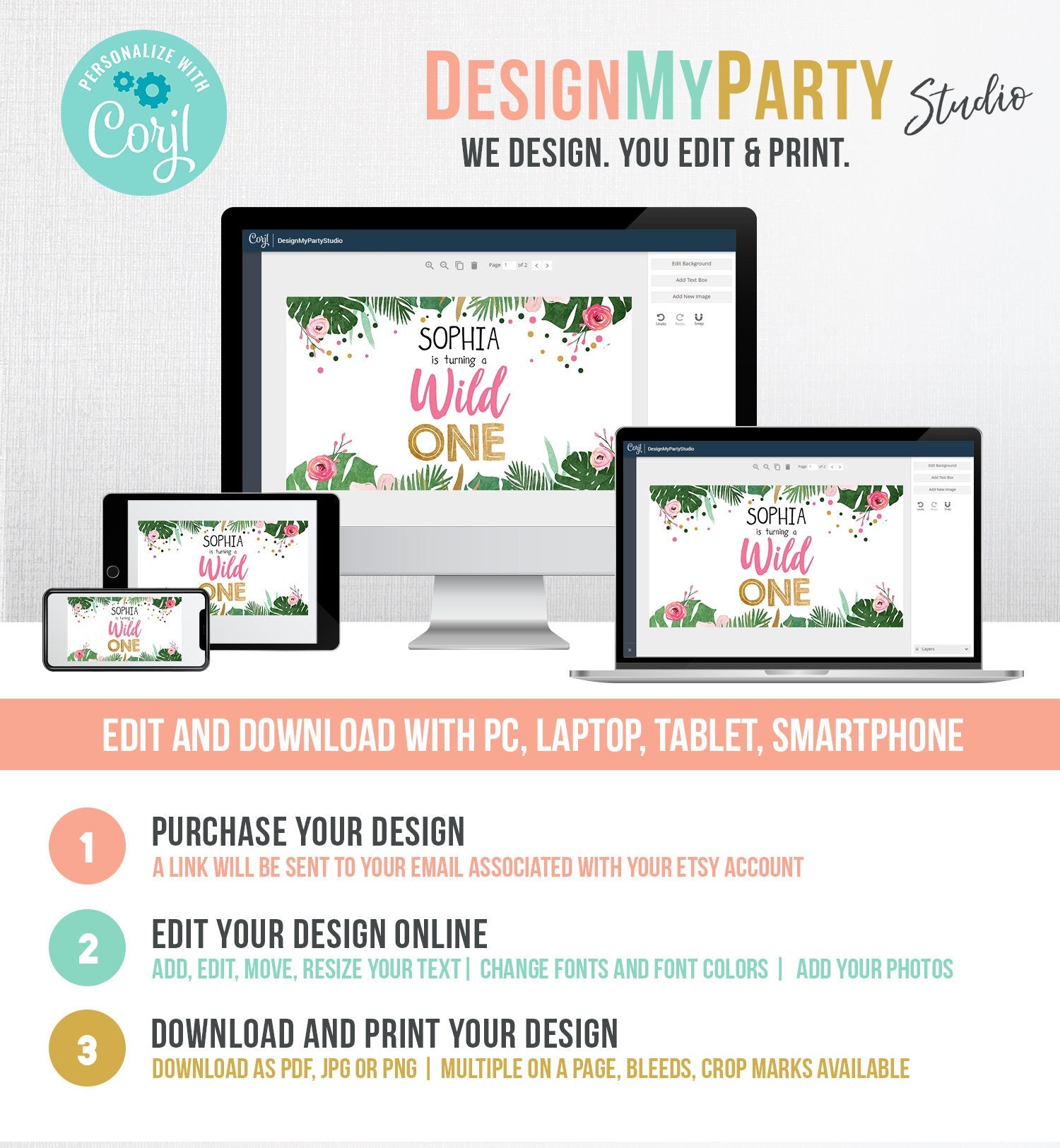 You will receive a link to edit your digital design, no printed items will be shipped!