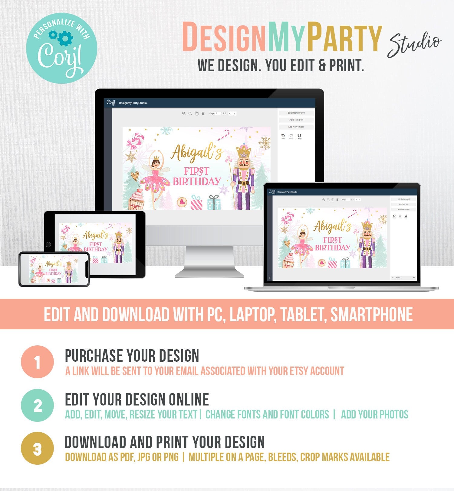 You will receive a link to edit your digital design, no printed items will be shipped!