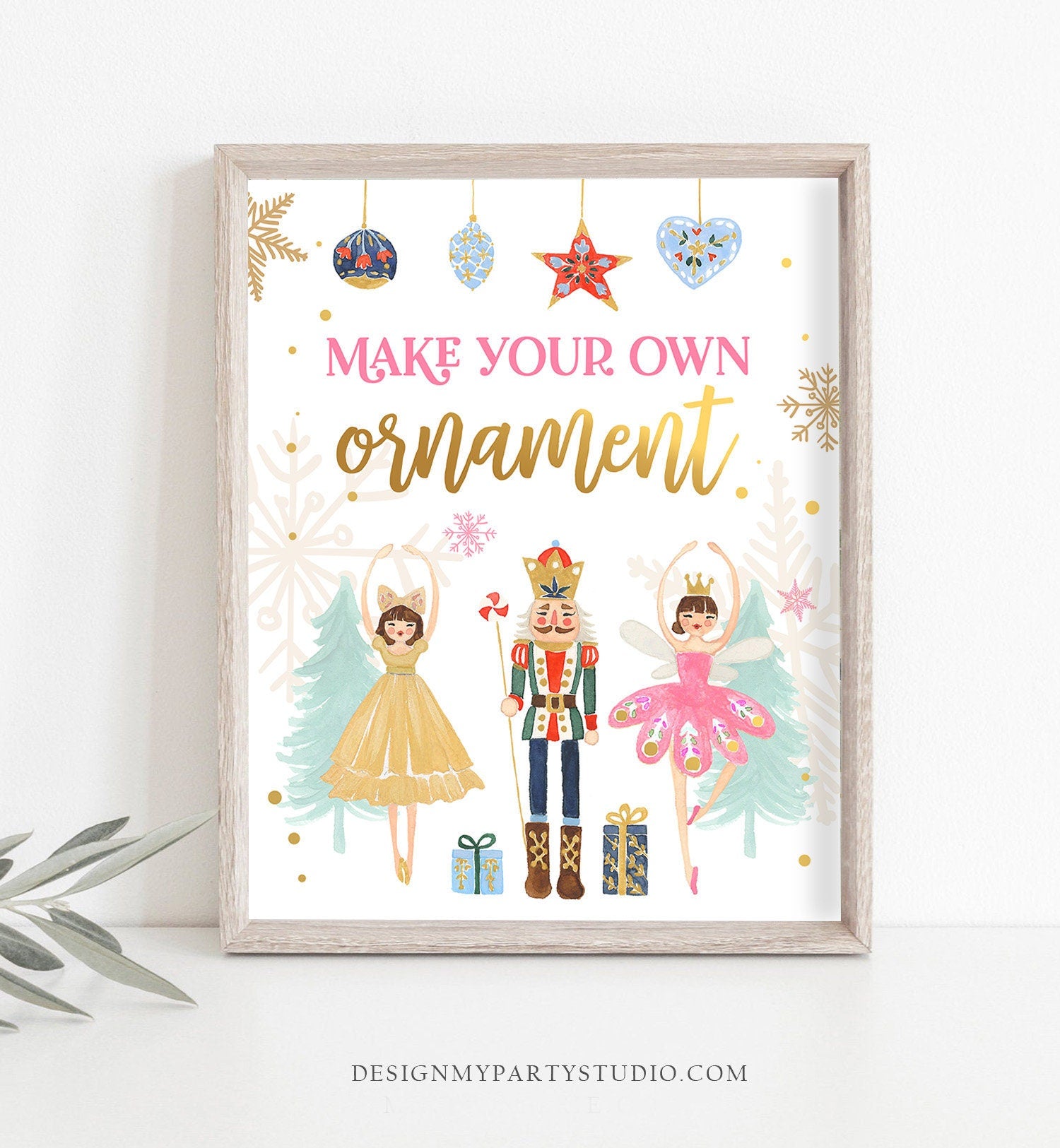 • Make Your Own Ornament Station Sign Nutcracker Birthday Decor Girl Sugar Plum Fairy Pink Nutcracker Ballet Favor Download Printable 0352
