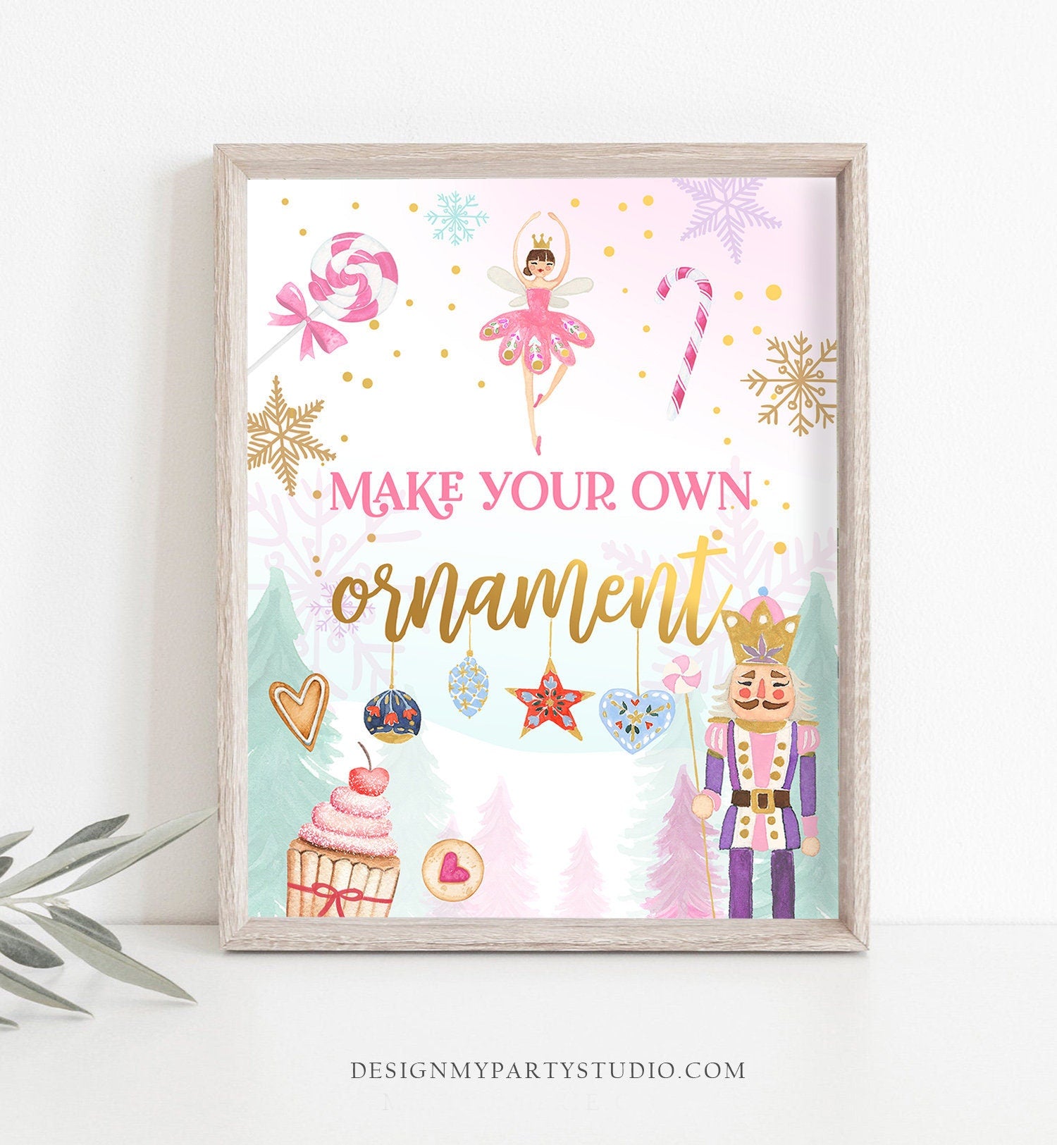 • Make Your Own Ornament Station Sign Nutcracker Birthday Decor Girl Sugar Plum Fairy Pink Nutcracker Ballet Favor Download Printable 0352