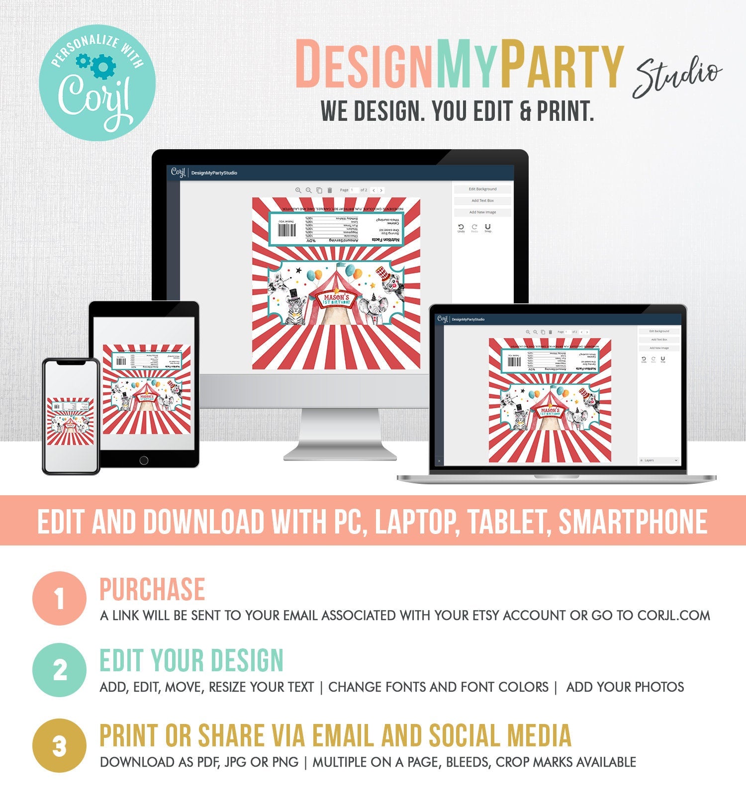 You will receive a link to edit your digital design, no printed items will be shipped!