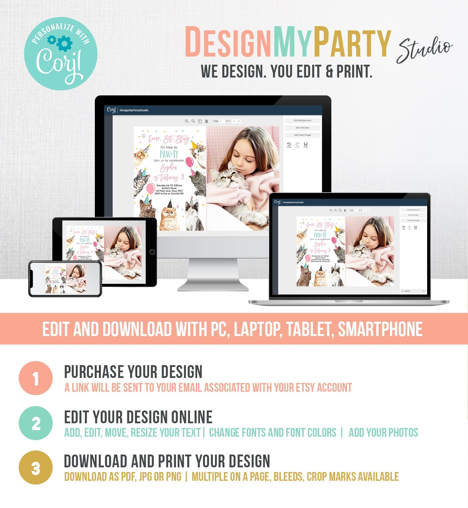 You will receive a link to edit your digital design, no printed items will be shipped!