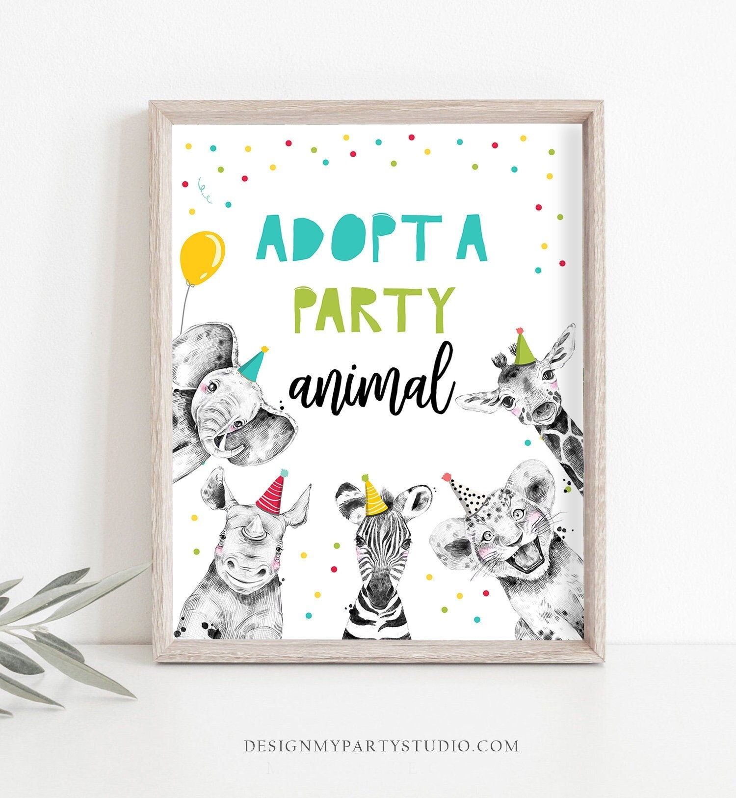 • Adopt an Animal Birthday Sign Table Decor Party Animals Birthday Wild One Safari Animals Boy Zoo Table Sign Zoo Party Jungle Printable 0390