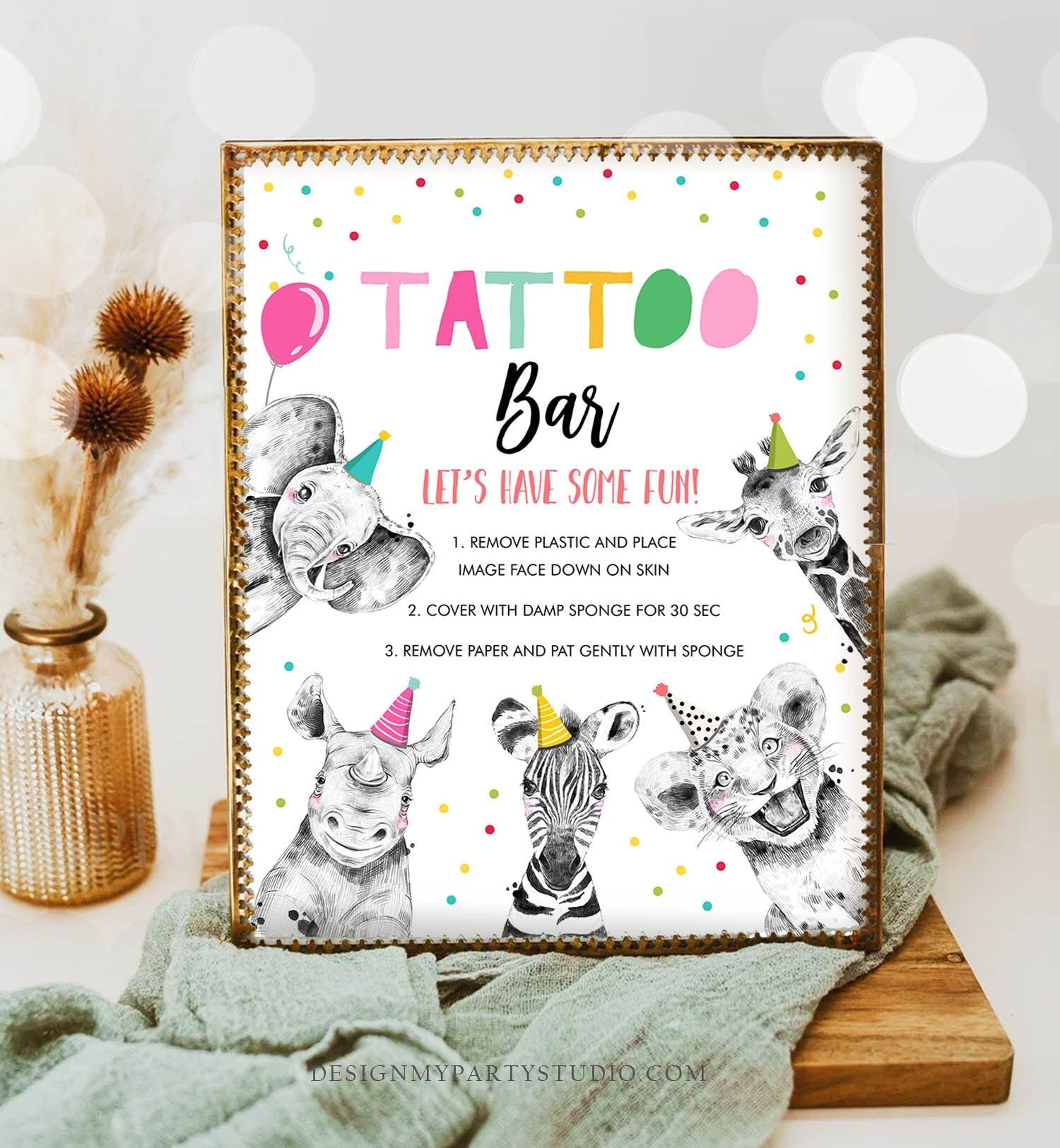 • Tattoo Bar Sign Party Animals Birthday Sign Safari Animals Decor Girl Birthday Wild One Animals Table Zoo Party Jungle Printable 0390