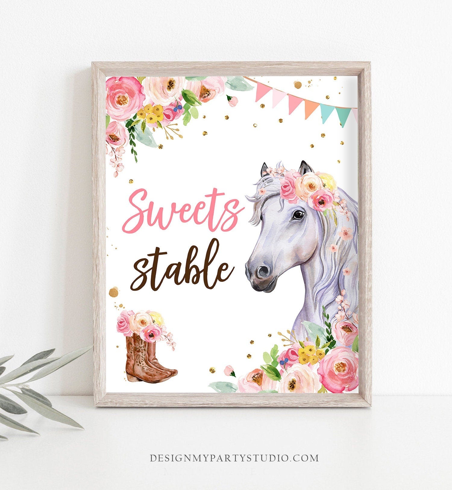 • Sweets Stable Sign Horse Party Sign Table Decor Floral Horse Birthday Cowgirl Horse Favors Farm Horseback Riding Pet Download Printable 0408