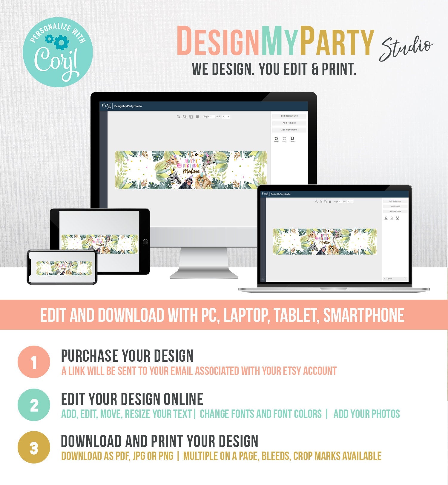 You will receive a link to edit your digital design, no printed items will be shipped!