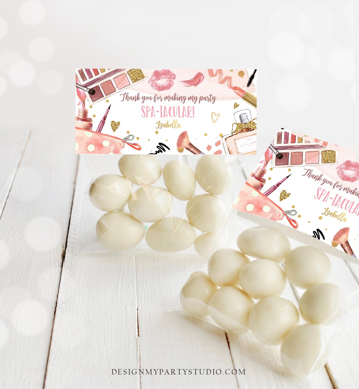 • Editable Spa Party Treat Bag Toppers Spa Favor Bag Glitz and Glam Birthday Favors Girl Birthday Favors Makeup Corjl Template Printable 0420