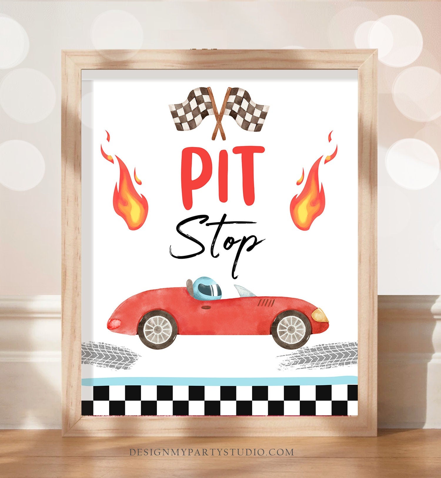• Pit Stop Race Car Sign Race Car Birthday Party Sign Two Fast Birthday Party Red Vintage Racing Car Decorations Download Printable 0424