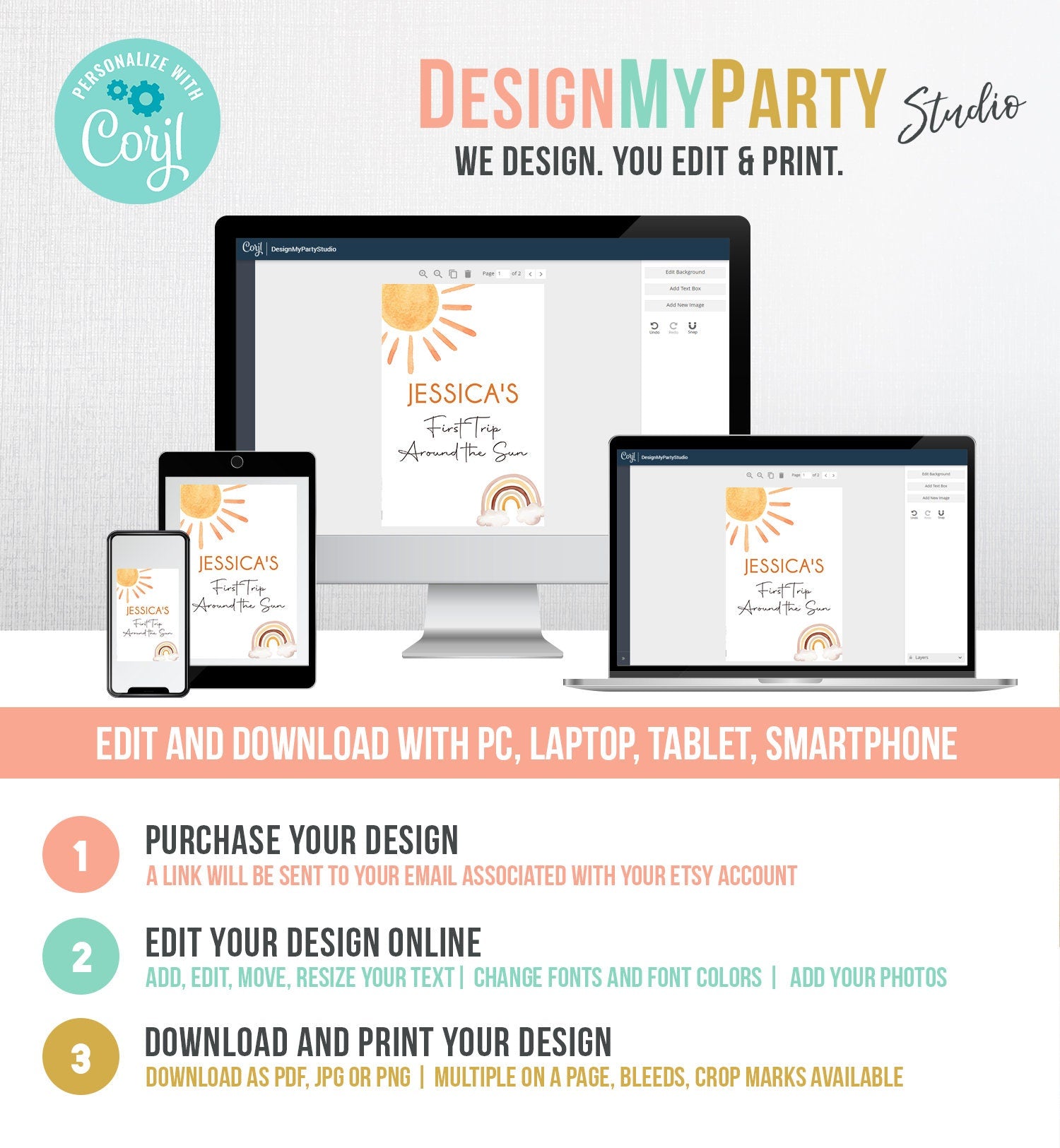 You will receive a link to edit your digital design, no printed items will be shipped!