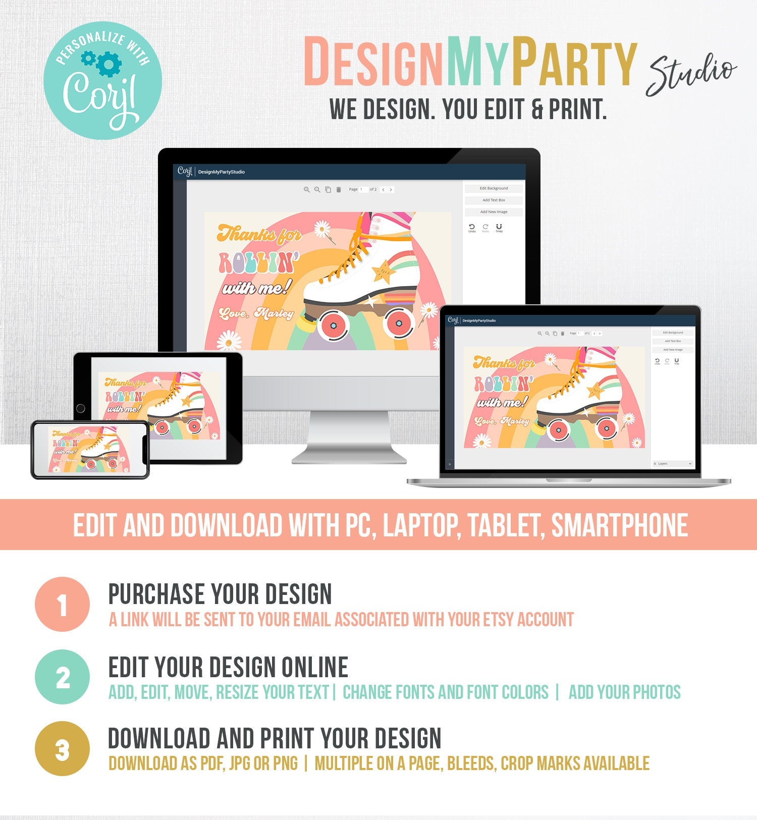 You will receive a link to edit your digital design, no printed items will be shipped!