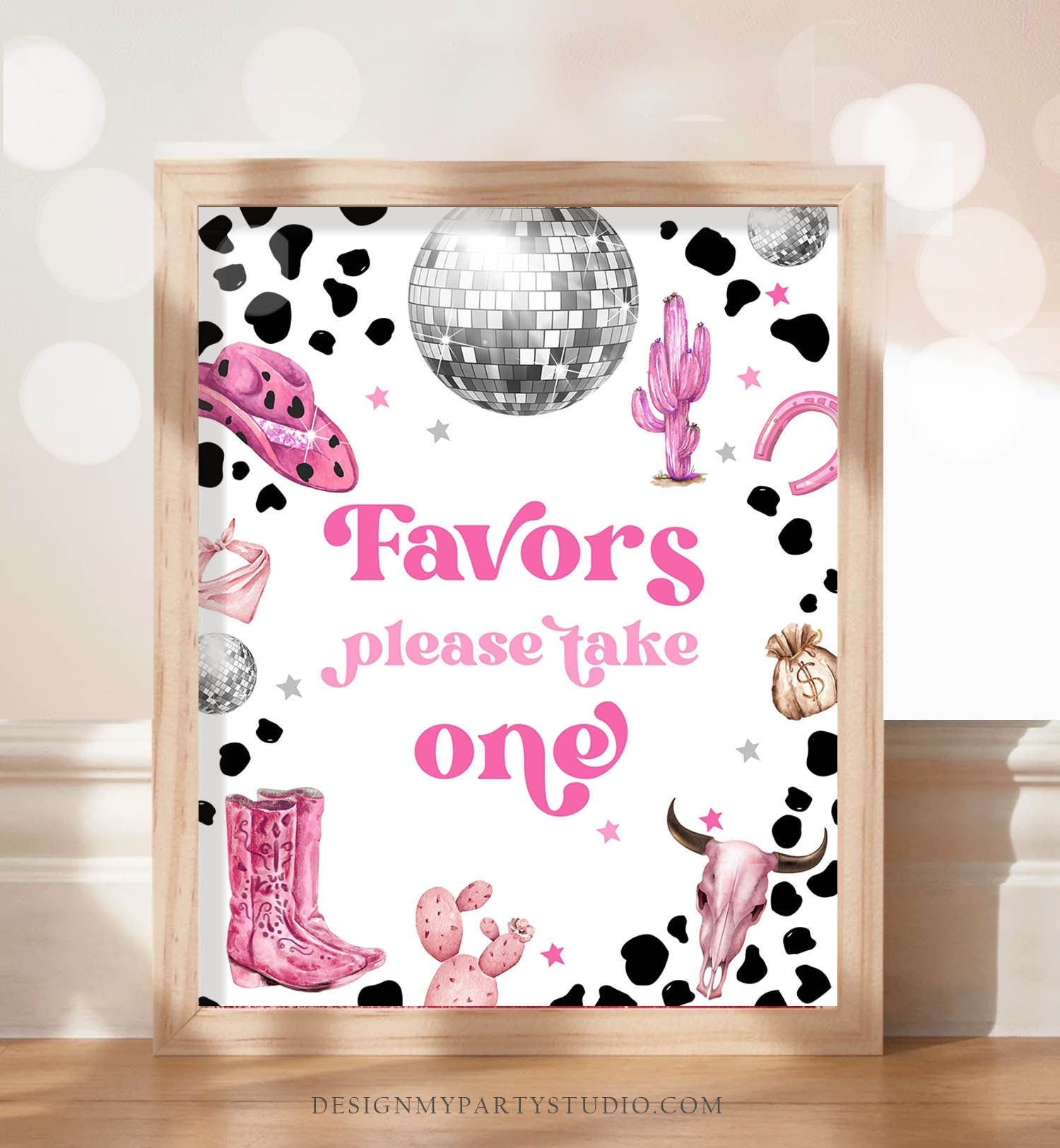 • Favors Sign Space Cowgirl Birthday Party Sign Disco Cowgirl Sign Pink Rodeo Party Nashville Wild West Country Girl Download Printable 0455