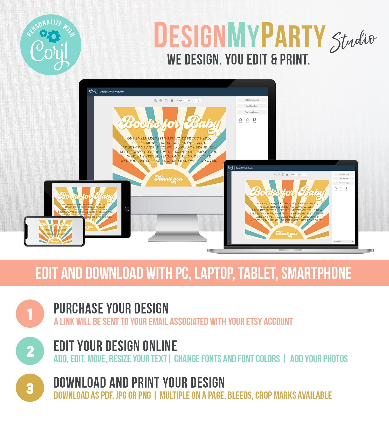 You will receive a link to edit your digital design, no printed items will be shipped!