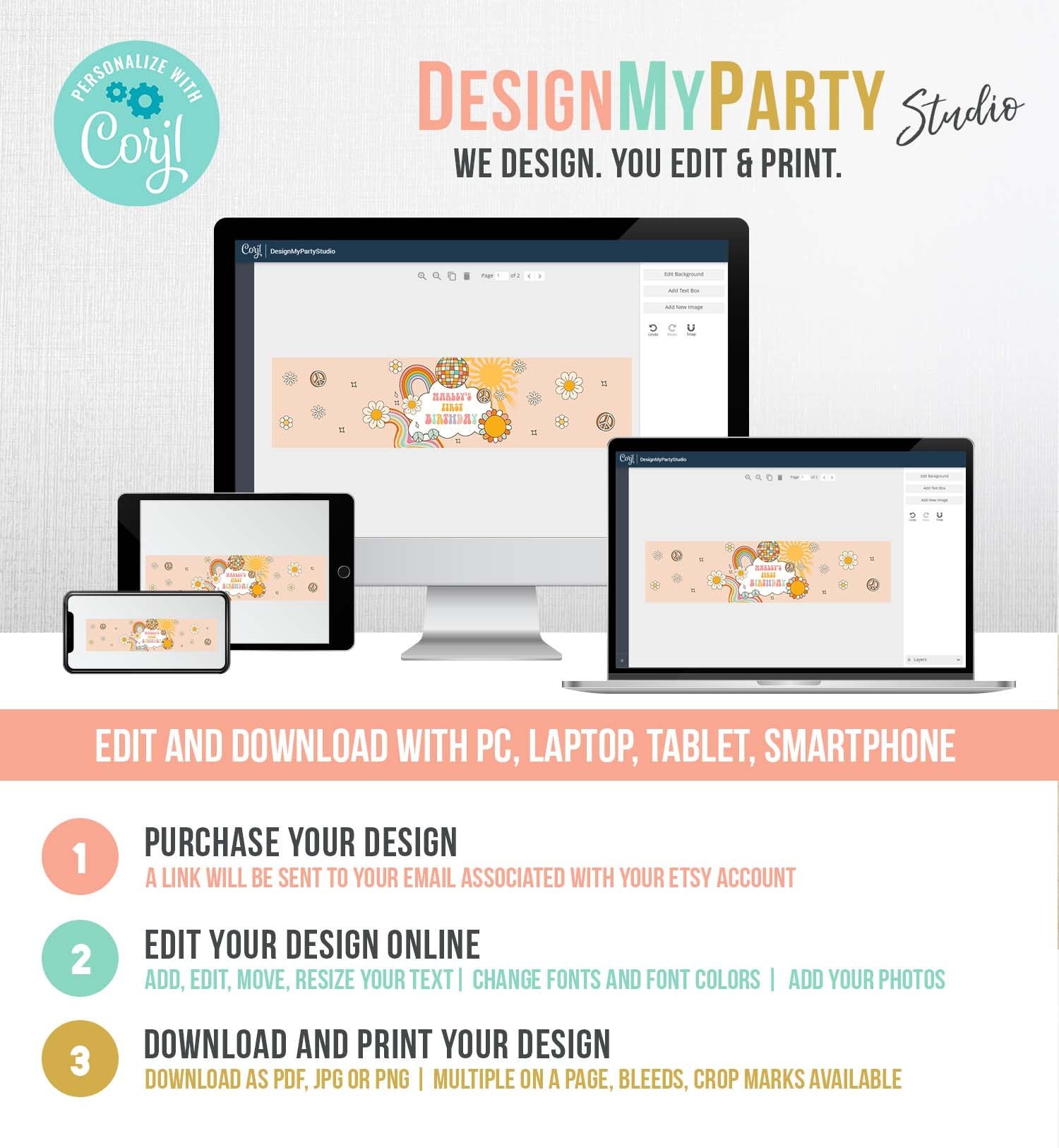 You will receive a link to edit your digital design, no printed items will be shipped!