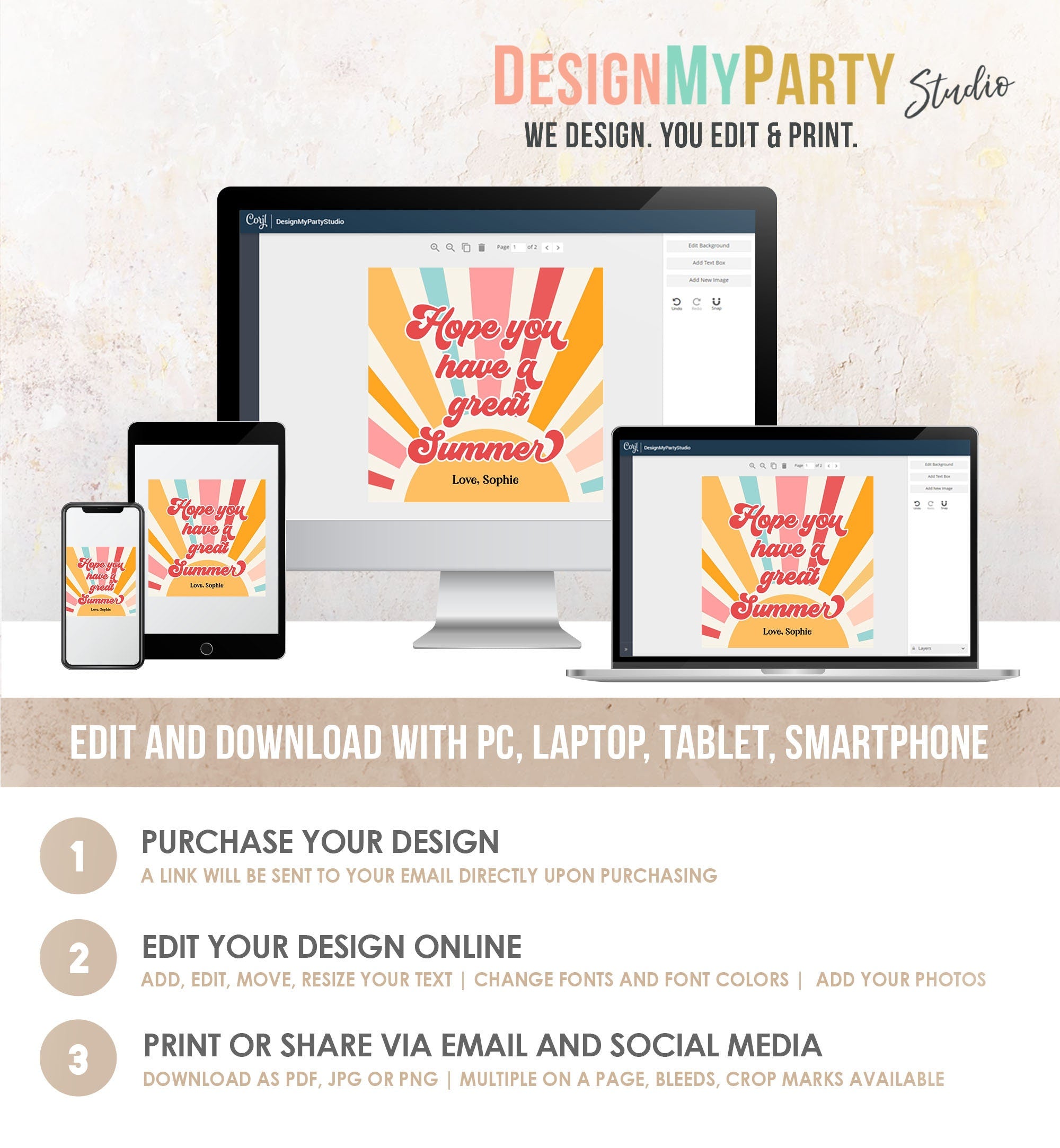You will receive a link to edit your digital design, no printed items will be shipped!