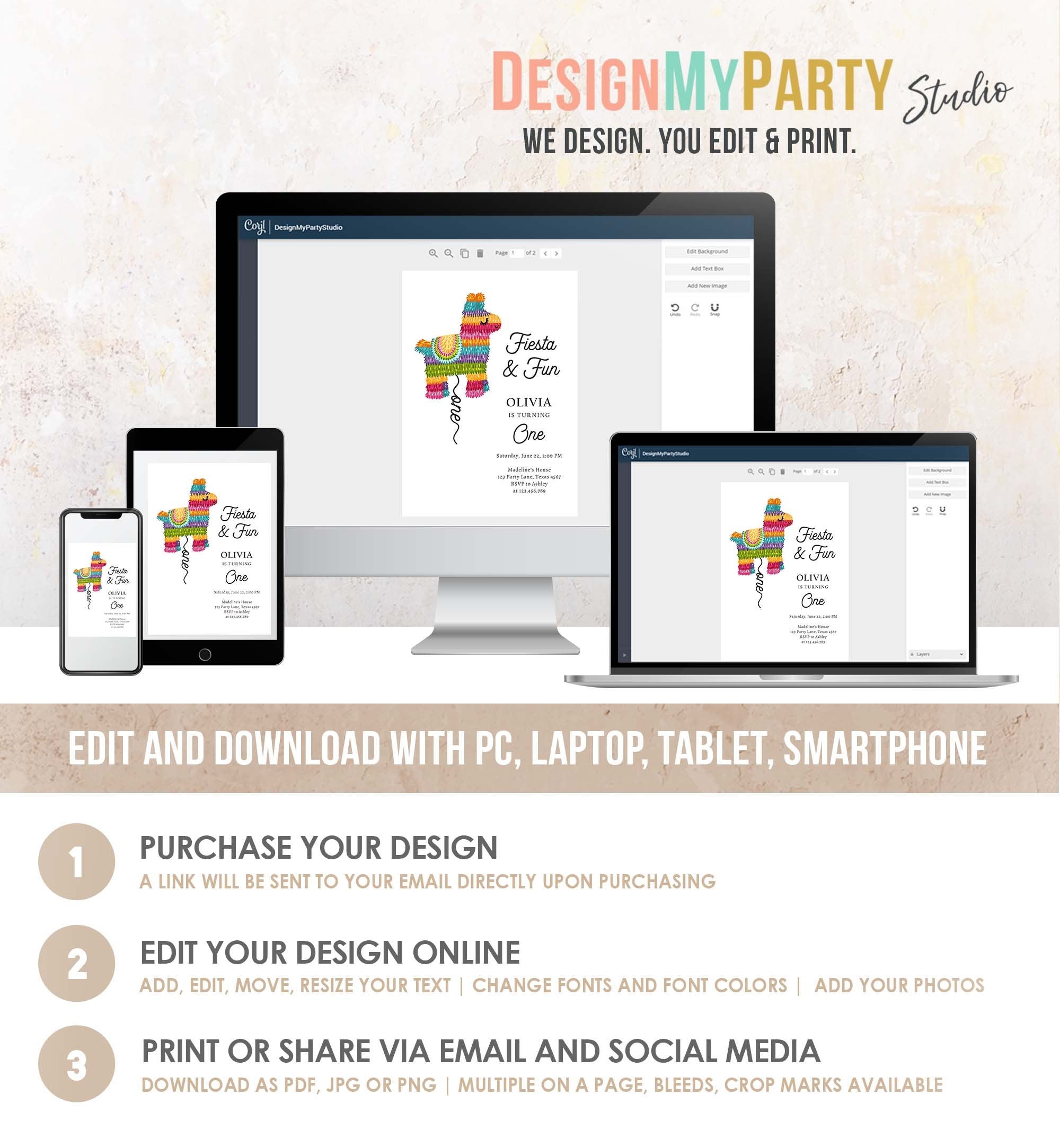 • Editable Fiesta Invitation First Fiesta Birthday Mexican Piñata Invite Girl Kids Fiesta and Fun Digital Download Template Printable 0500