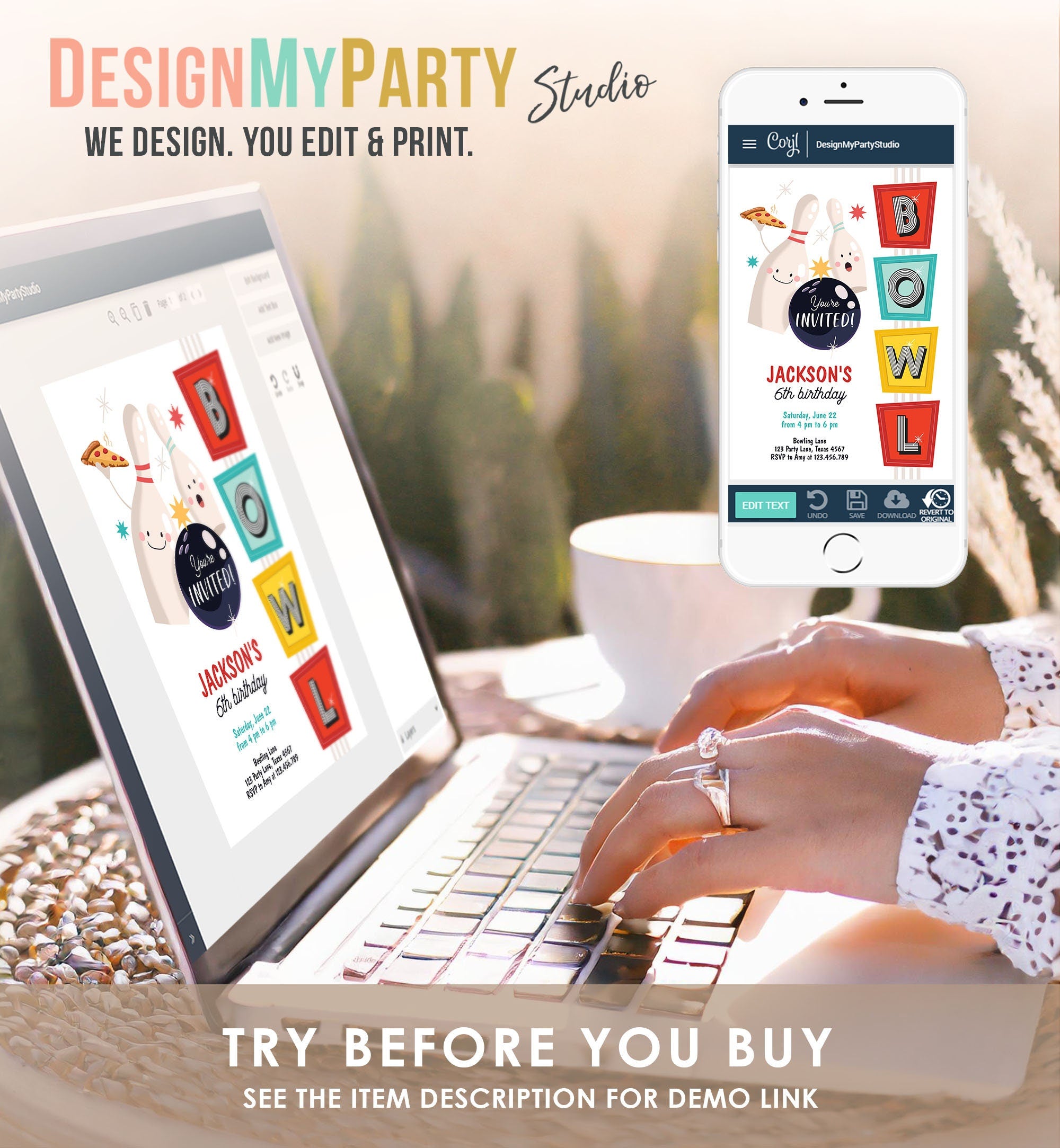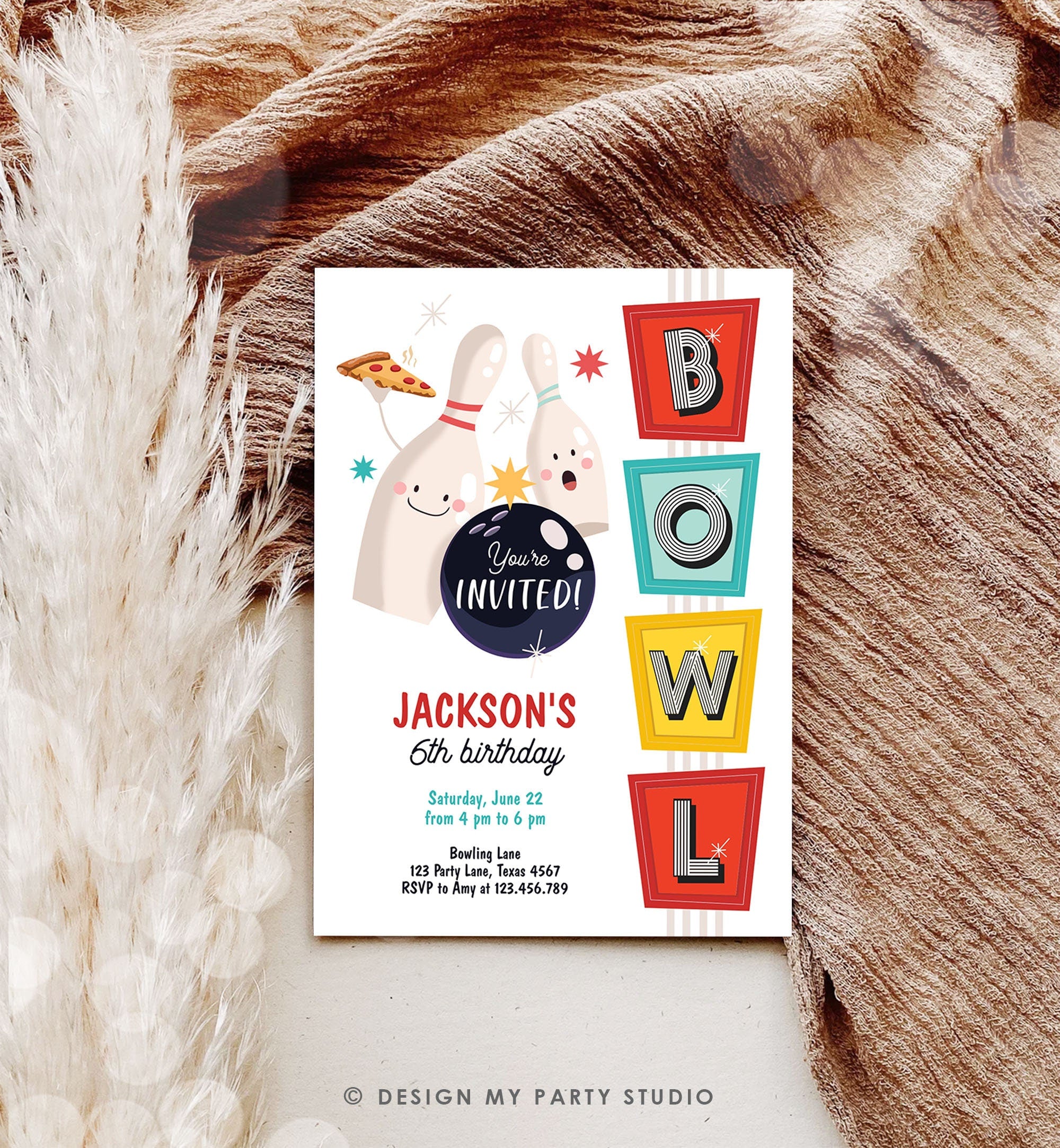 • Editable Bowling Birthday Invitation Strike Up Some Fun Boy Girl Bowling Party Pizza Teen Retro Digital Download Template Printable 0505