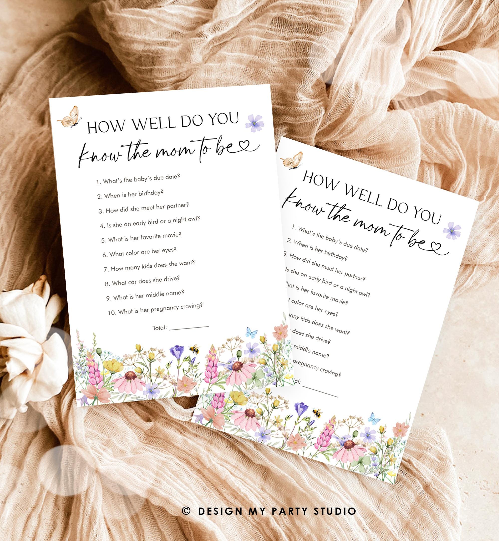 • Editable How Well Do You Know The Mom The Be Game Card Wildflowers Baby Shower Game in Bloom Butterflies Digital Template Printable 0543