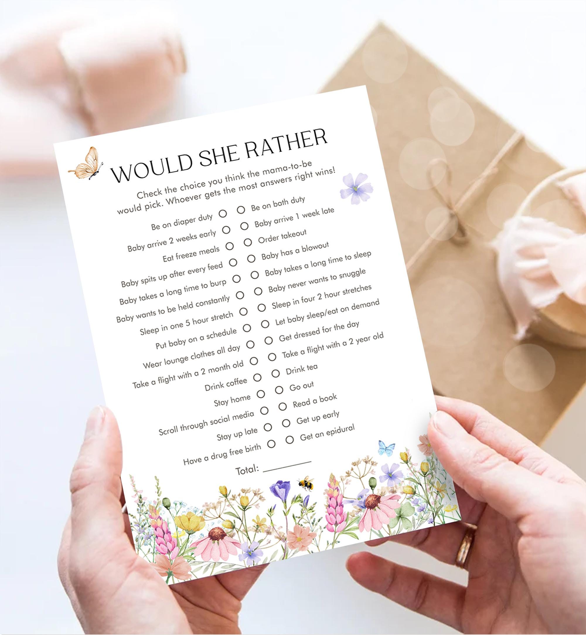 • Editable Would She Rather Game Card Wildflowers Baby Shower Game Guess Game Baby in Bloom Butterflies Digital Template Printable 0543