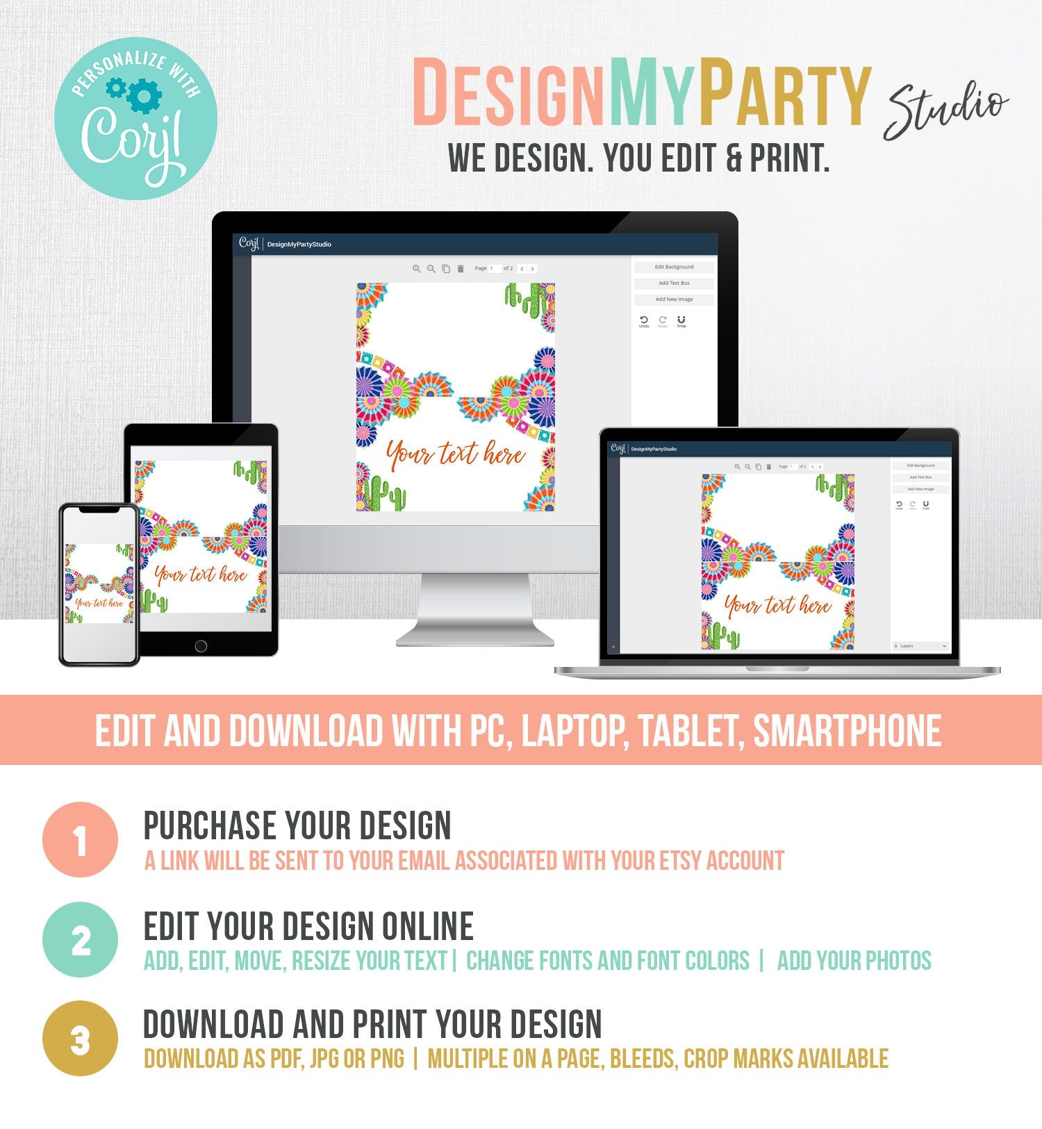 You will receive a link to edit your digital design, no printed items will be shipped!