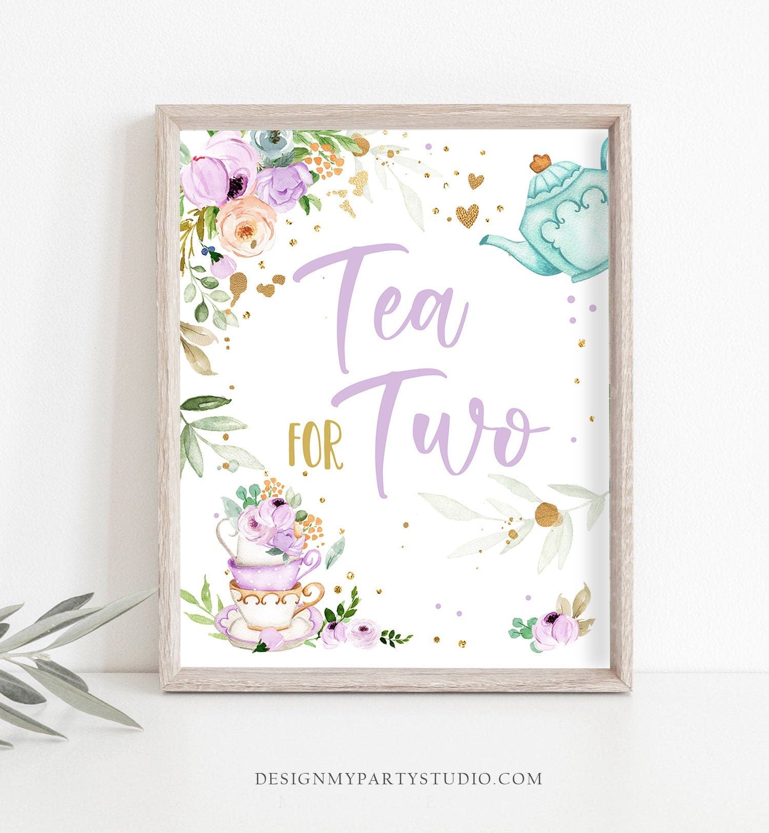 • Tea for Two Party Sign Tea 2nd Birthday Sign Purple Floral Tea Birthday Decor Tea par-tea Table Sign Girl Treats Download Printable 0349