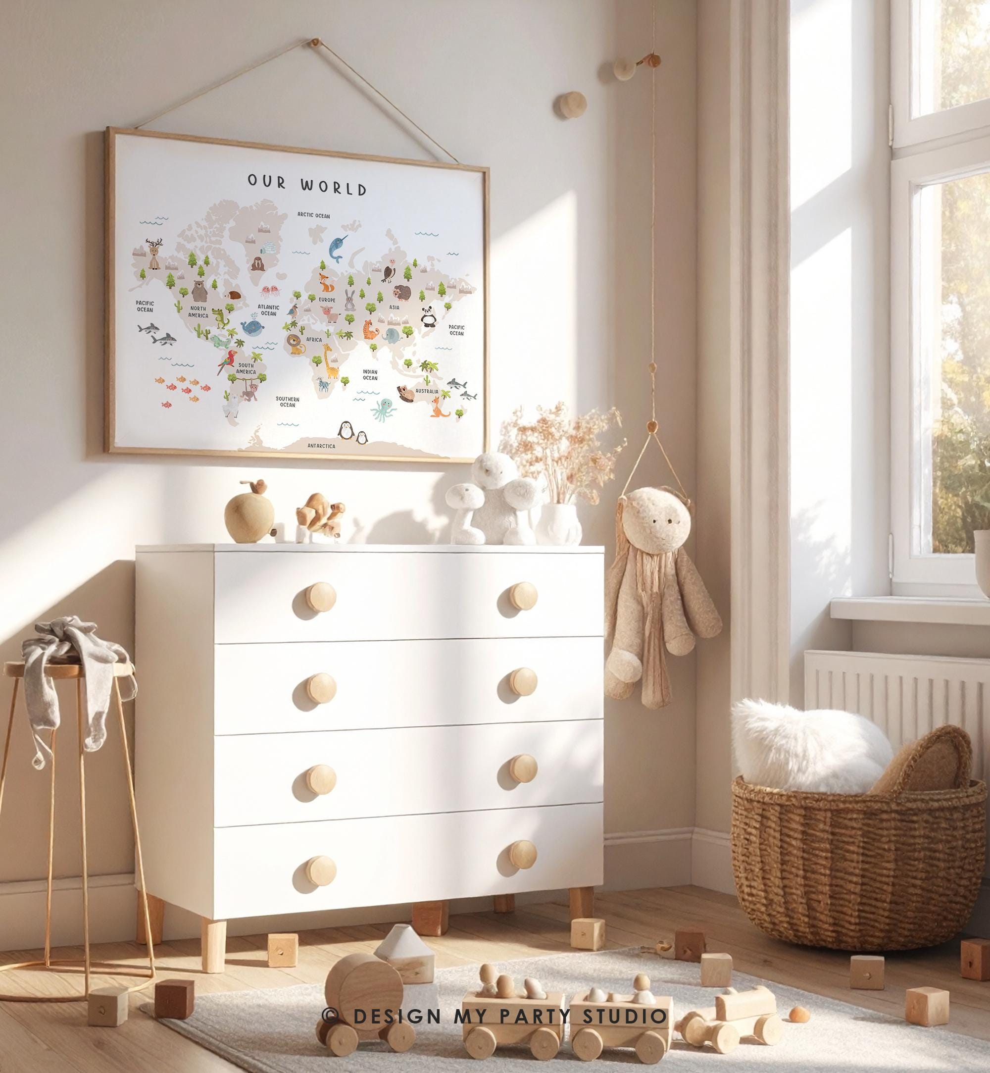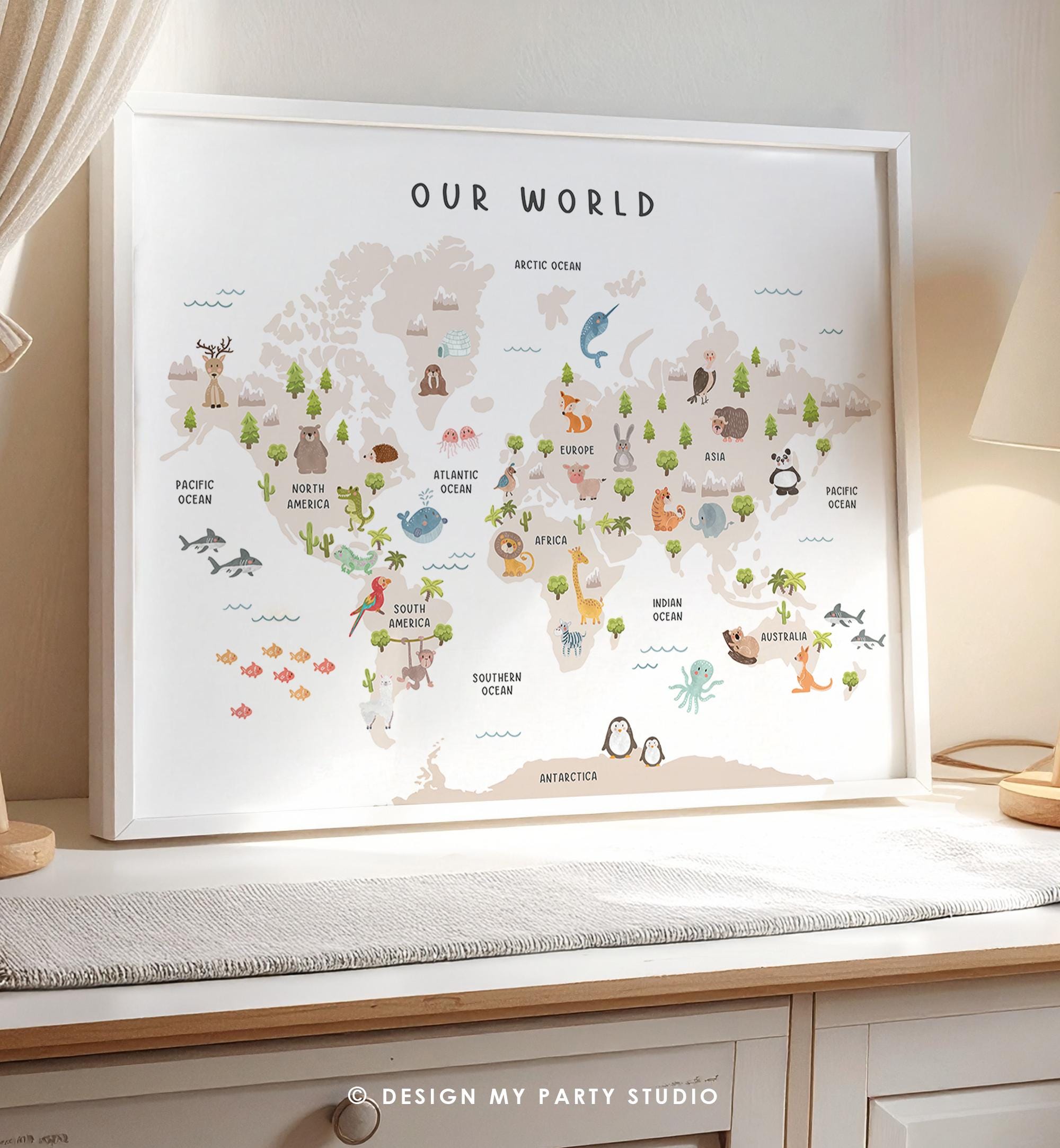 • Animal World Map Poster Educational Safari Animals Nursey Classroom School Activity Kids Sign Montessori Instant Download Printable 0550