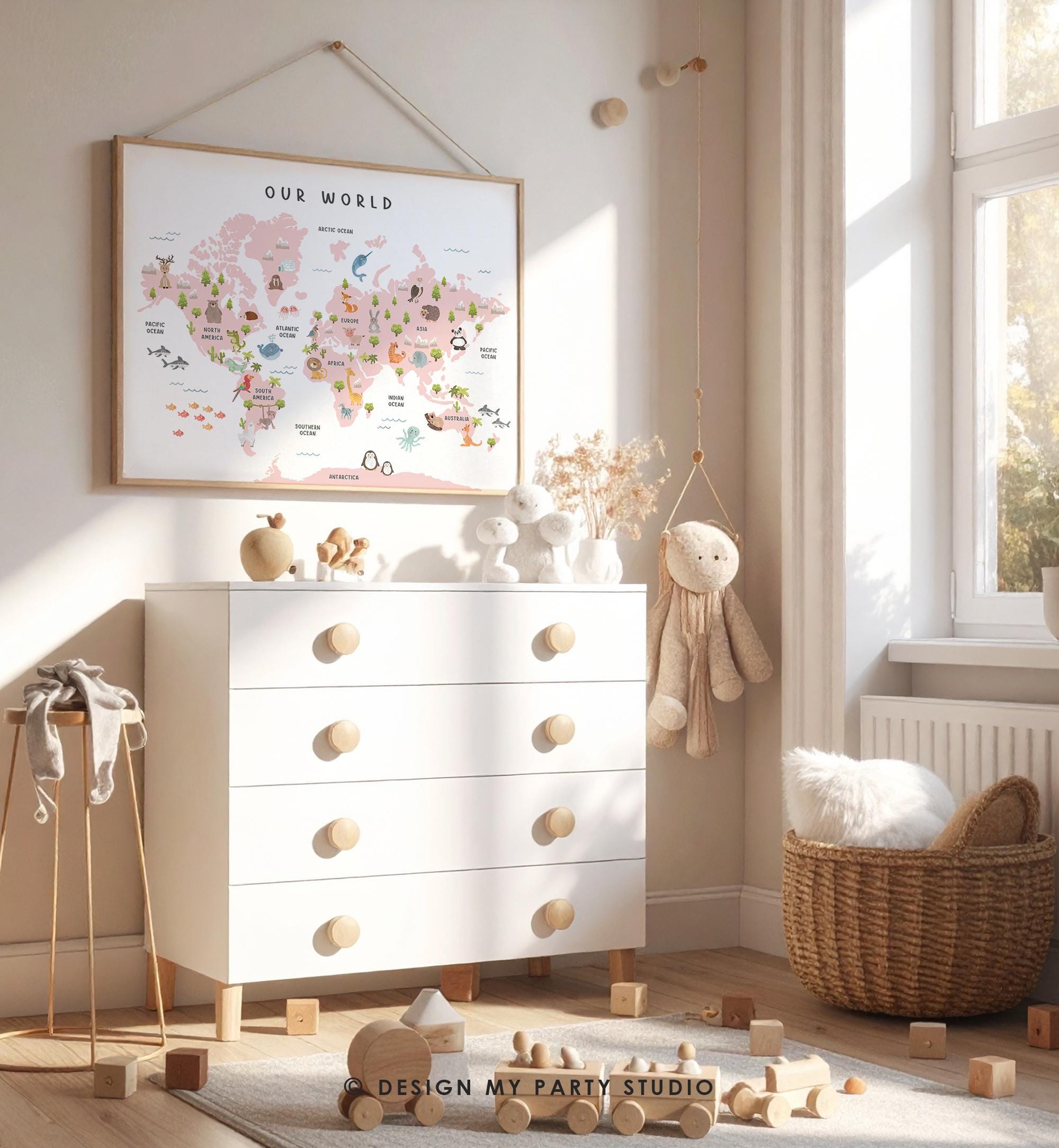 ★ A cheerful World Map poster, full with handdrawn animals. Not only colorful and fun but also educational!