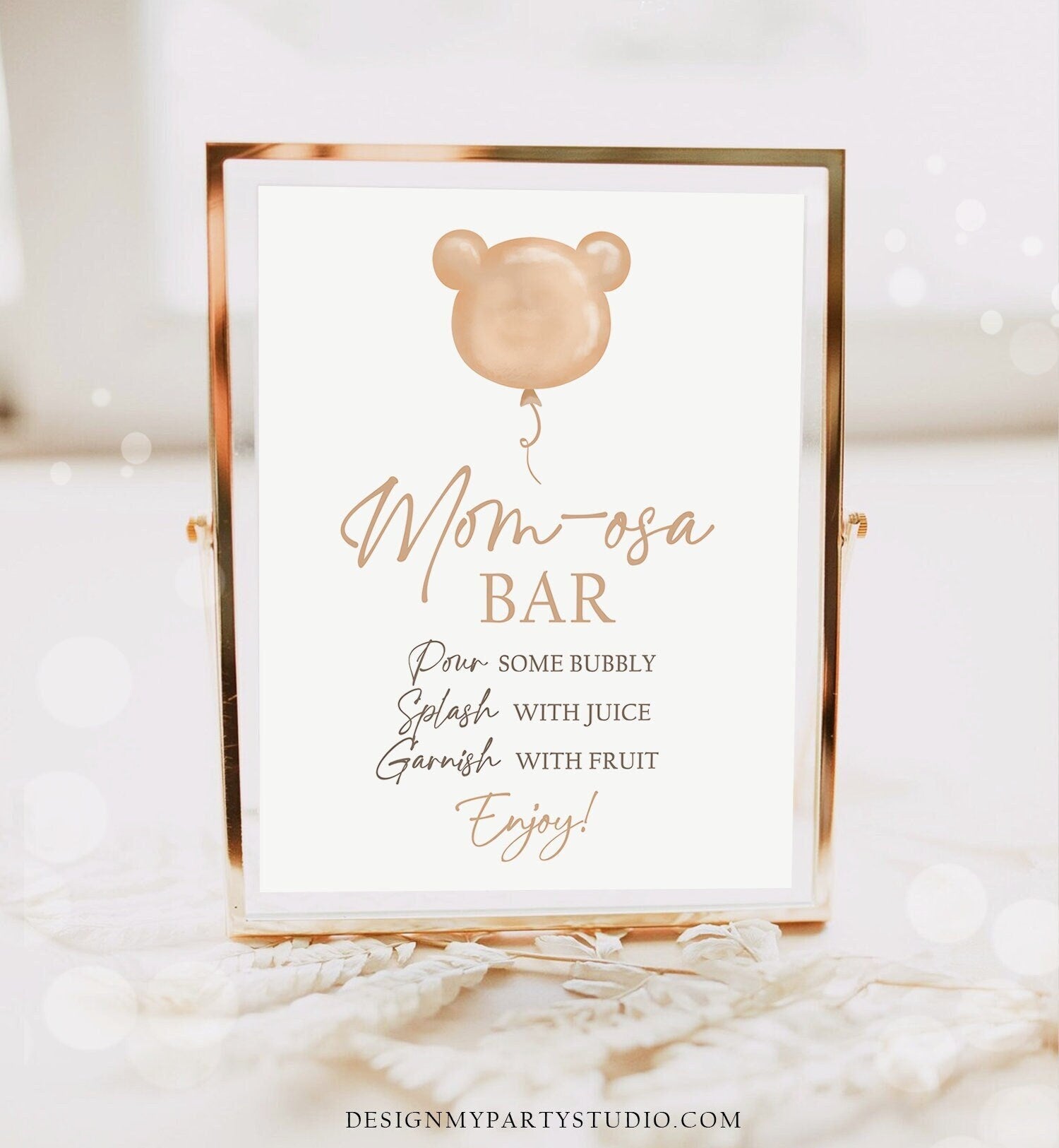 • Momosa Bar Sign Boho Teddy Bear Baby Shower Sign Boho Bearly Wait Mom-osa Bar Mimosa Drinks Decor Gender Neutral Bear Balloon Printable 0439