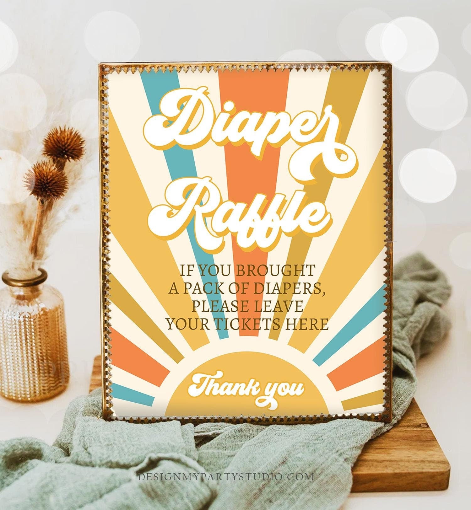 • Diaper Raffle Sunshine Baby Shower Sign Here Comes the Son Sun Groovy Retro Boy Activity Party Decor Digital Download Printable 0457