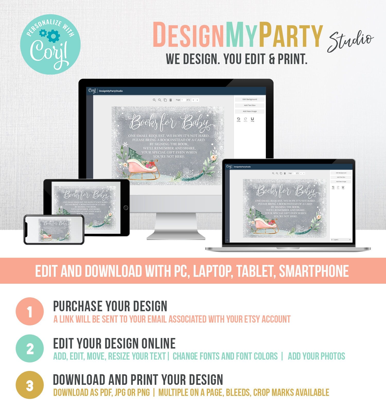 • Editable Baby Its Cold Outside Bring a Book Card Winter Baby Shower Books for Baby Insert Gender Neutral Sleigh Template Download Corjl 0353
