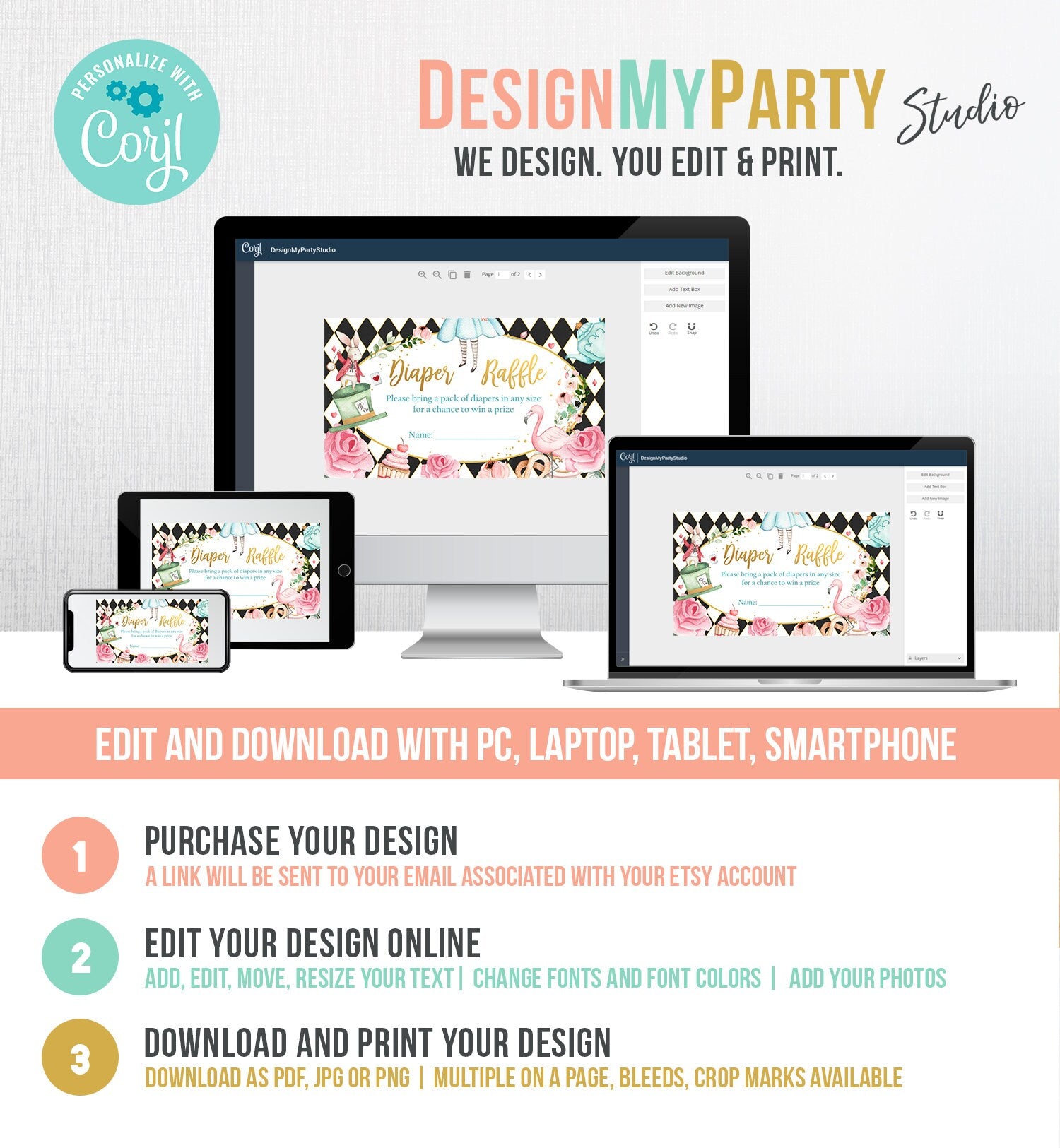 You will receive a link to edit your digital design, no printed items will be shipped!