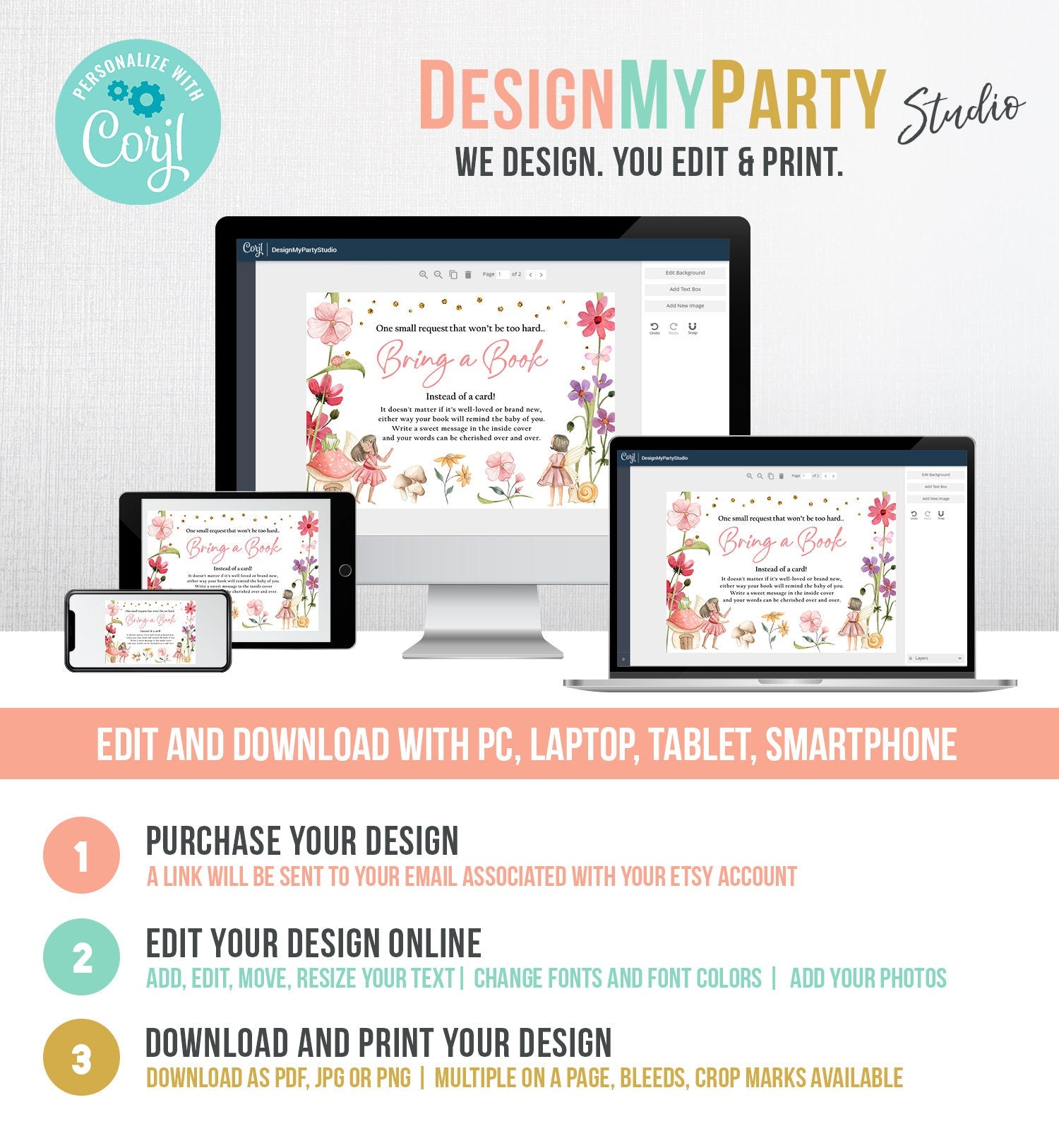 You will receive a link to edit your digital design, no printed items will be shipped!