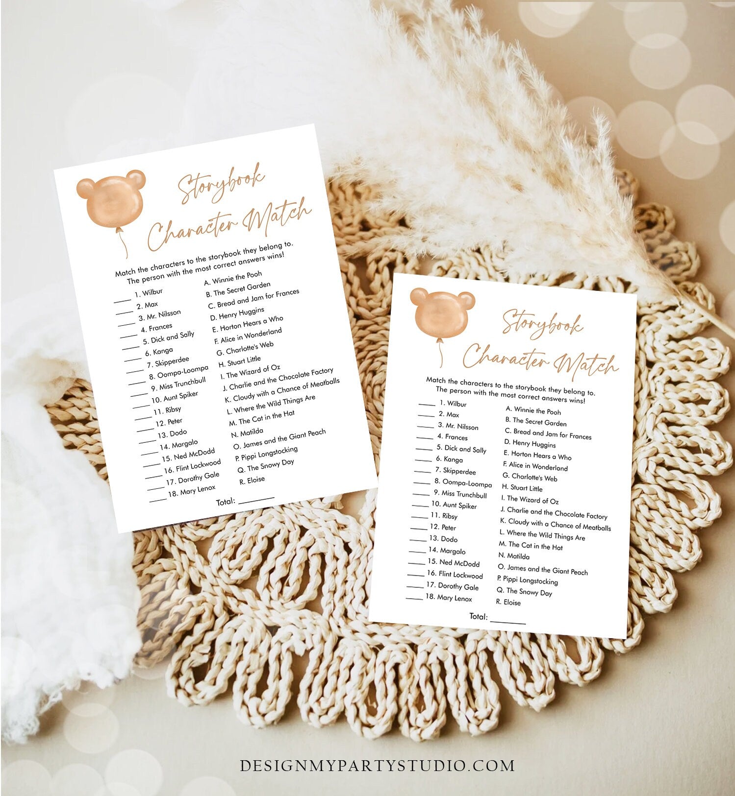 • Editable Storybook Character Match Game Baby Shower Game Modern Bear Teddy Bear Shower Bearly Wait Boy Girl Corjl Template Printable 0439