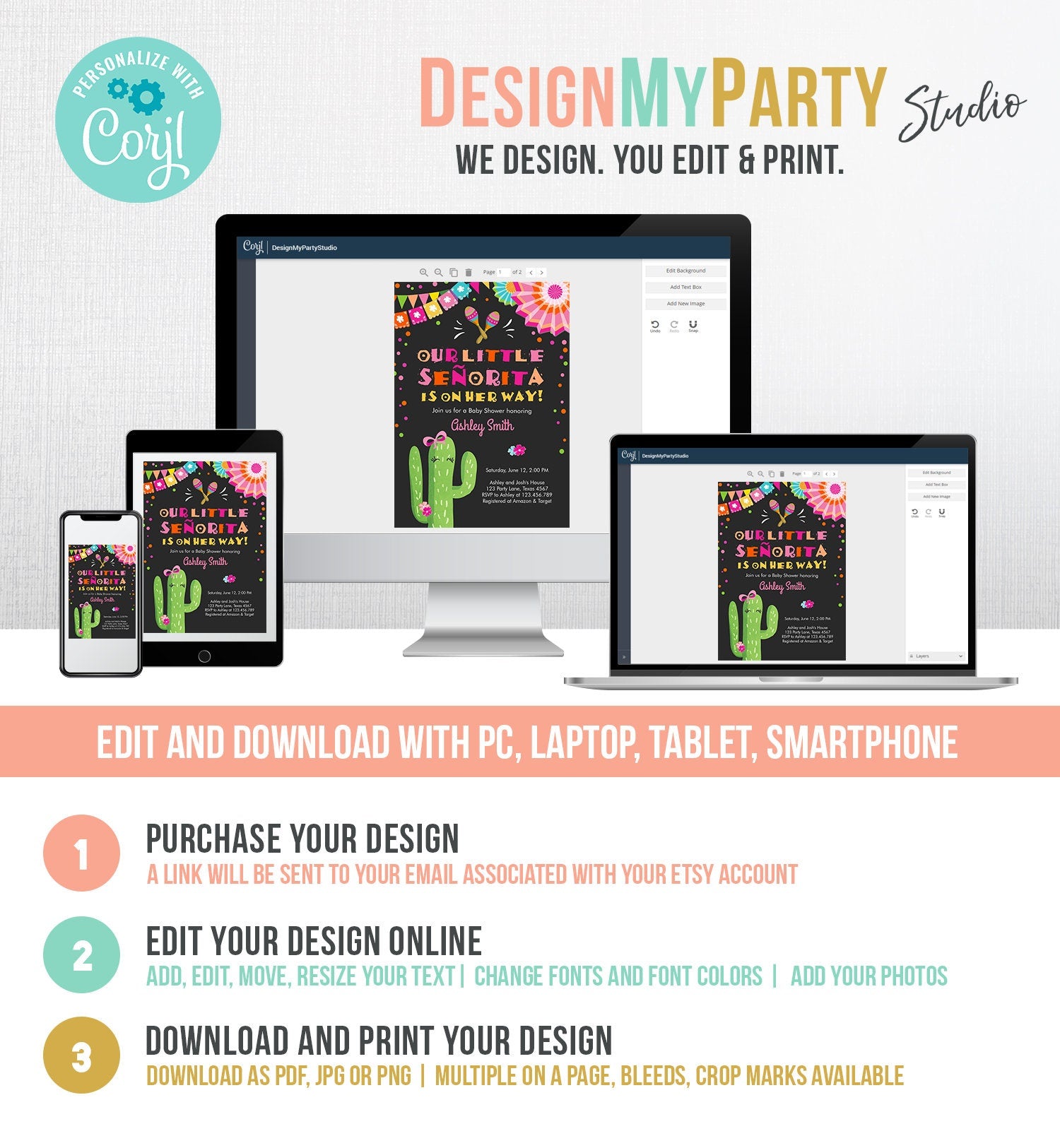 You will receive a link to edit your digital design, no printed items will be shipped!