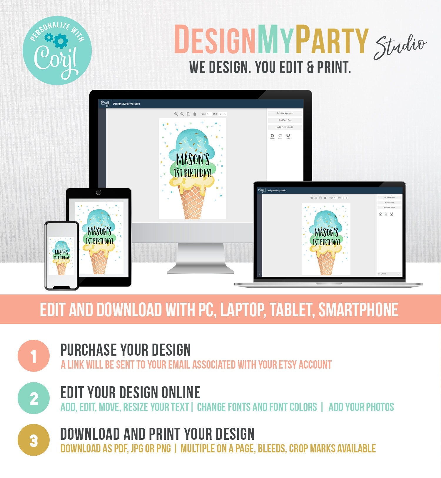 You will receive a link to edit your digital design, no printed items will be shipped!