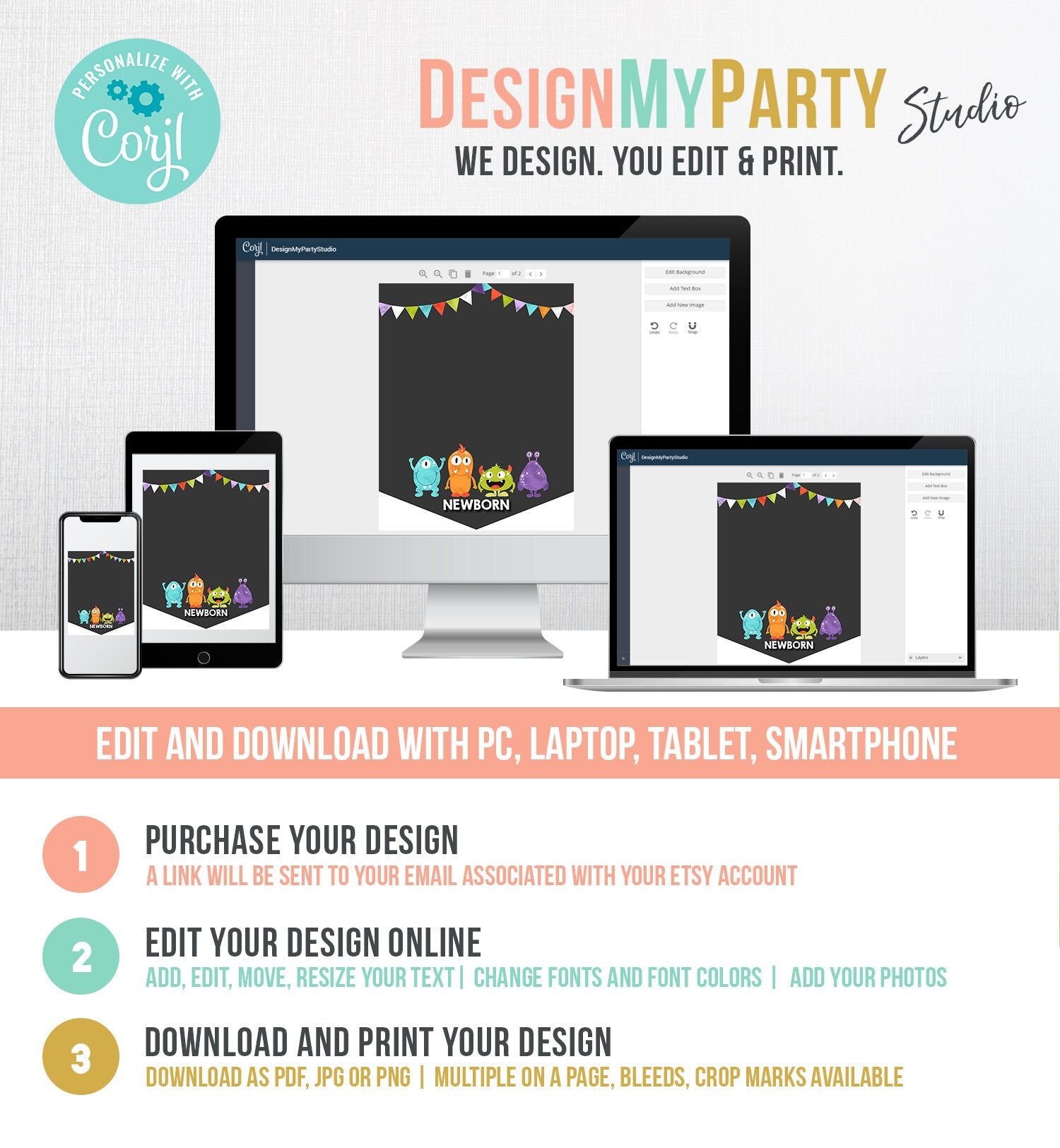 You will receive a link to edit your digital design, no printed items will be shipped!