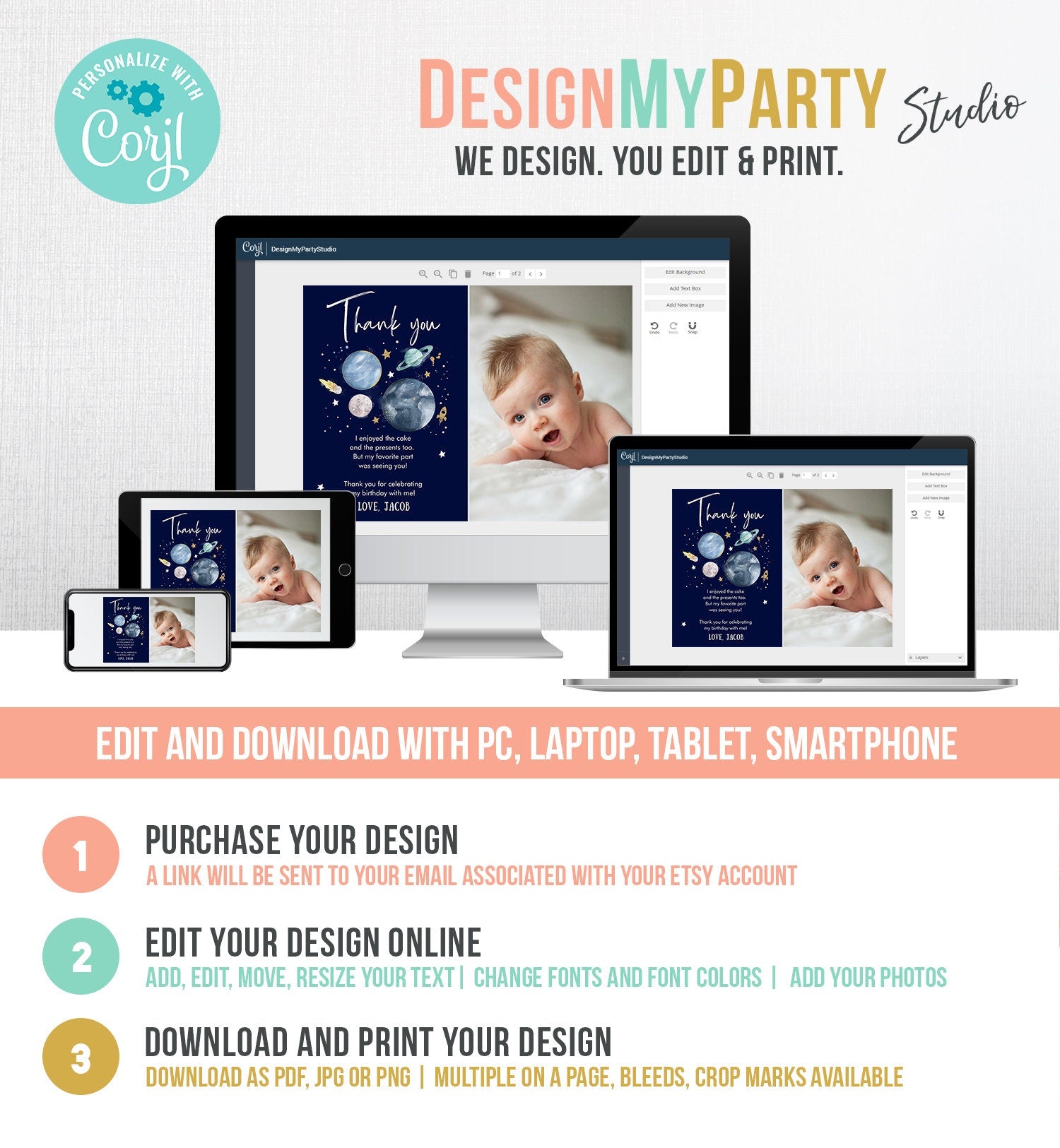You will receive a link to edit your digital design, no printed items will be shipped!