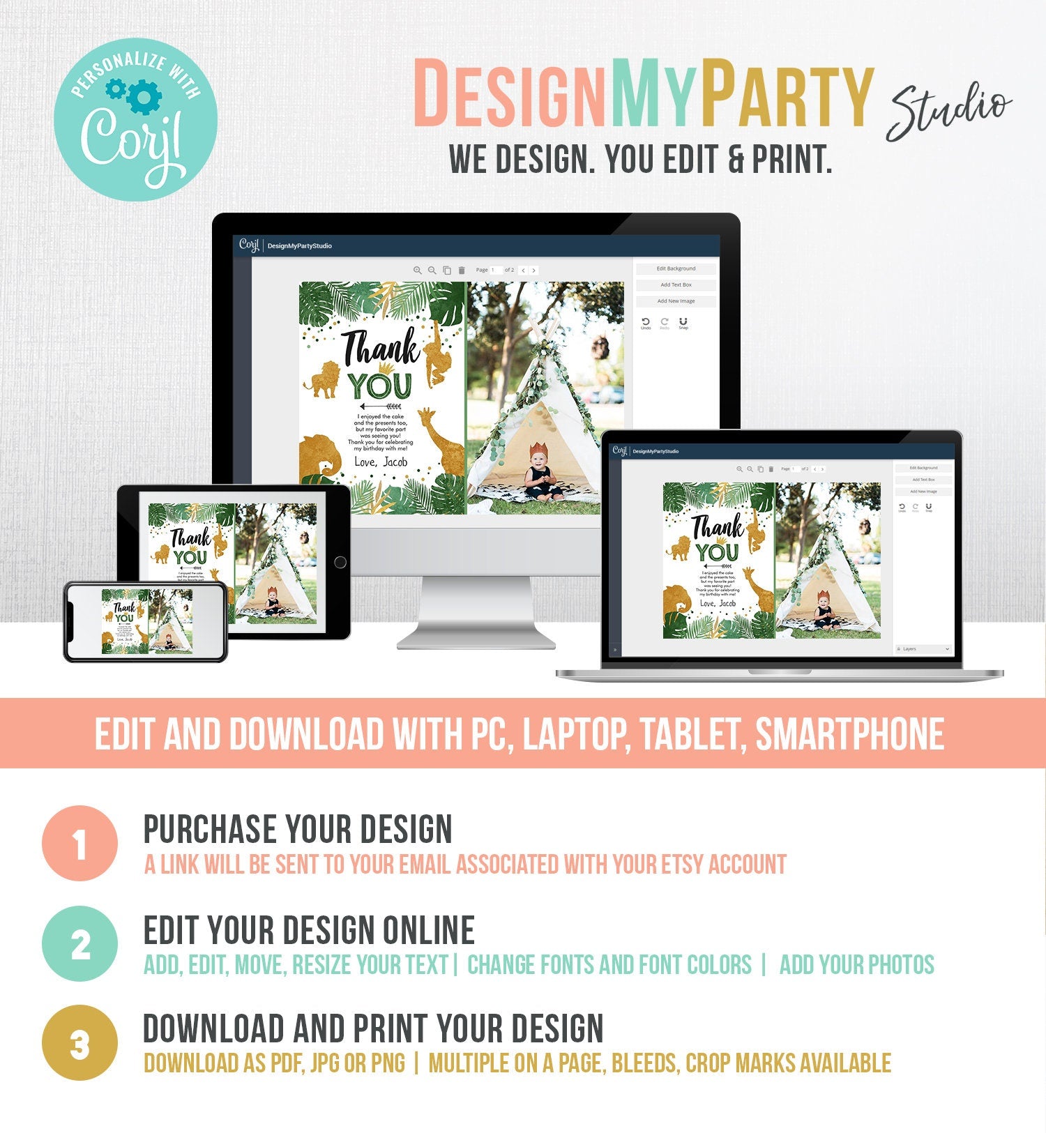 You will receive a link to edit your digital design, no printed items will be shipped!